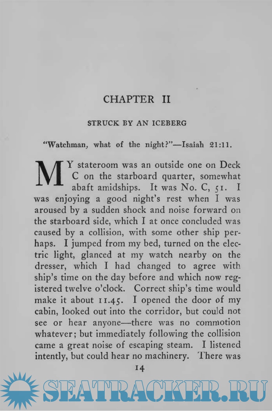 Description: Colonel Archibald Gracie IV, an American writer, amateur historian, and member of New York's prominent Gracie family, boarded the Titanic as a first-class passenger on his return trip home from a visit in Europe. In the fateful early morning hours of April 15, Gracie assisted Second Officer Lightoller in freeing the collapsible lifeboats before he scrambled atop overturned Collapsible "B" to avoid being pulled down by the undertow of the sinking ship. Gracie survived the harrowing night atop the lifeboat and returned to New York aboard the Carpathia, beginning work on an account of his Titanic experience upon his arrival home. Published shortly after Gracie's death in December 1912 (his health never recovered after the calamity), "The Truth About the Titanic" remains one of the most popular accounts of the sinking for its painstaking detail.