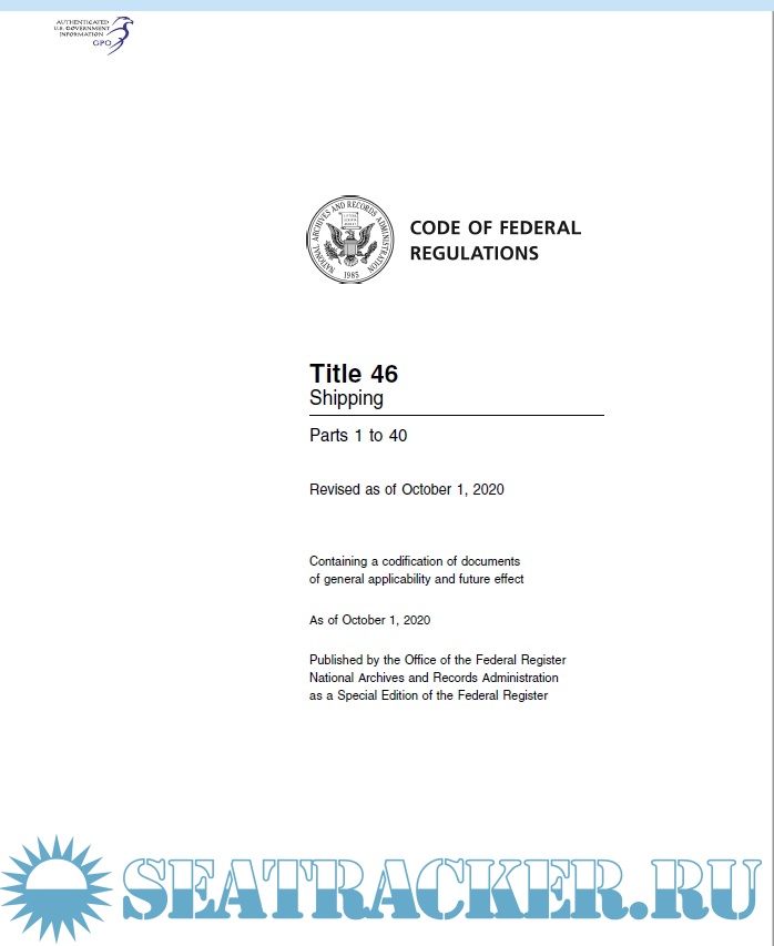 Code of Federal Regulations CFR 46 Shipping Volumes 1 - 9 dated October 1, 2020Screenshots
