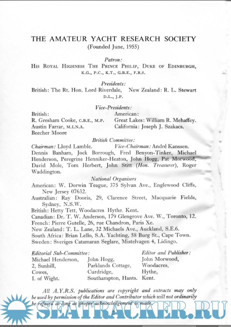 Year: 1955 Language: english Author: A.Y.R.S. Publication No.13 Genre: Guide Format: PDF Quality: Unknown Number of pages: 114 Description: Description and sketches of different types of self steering.