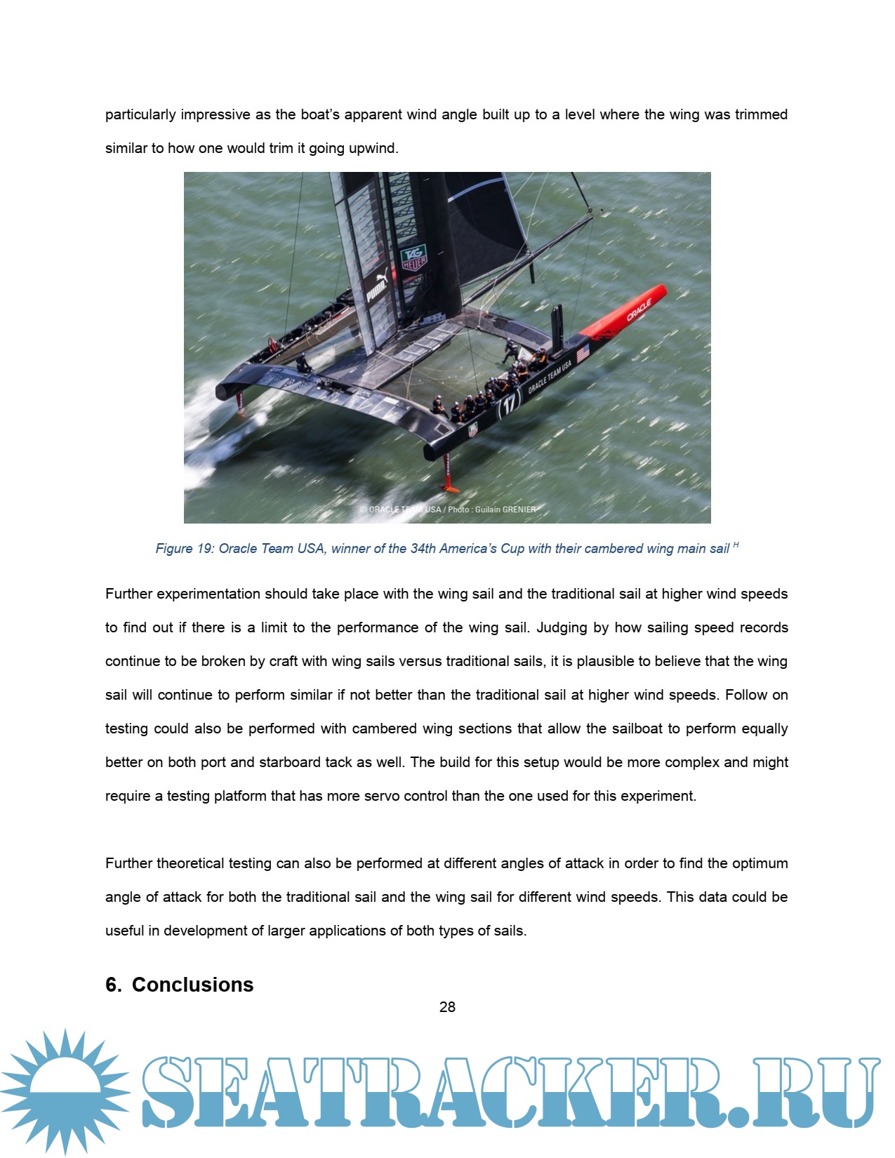 similar and most of the time better than the traditional sail for the given parameters. The results of this paper prove that the application of wing sails can be used for smaller boats as well as larger boats as was previously known. These results also show that for any use of sailing methodologies, a wing sail can be used instead of a traditional sail for greater performance