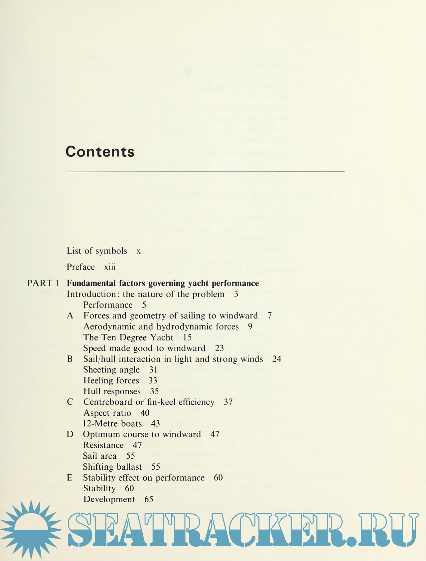 Year: 1979 Language: english Author: Marchaj C.A. Genre: Technical book Publisher: Granada Pub Edition: 1st ISBN: 0229986528 Format: PDF Quality: Scanned pages Pages count: 728 Description: The international classic work of reference for anyone wishing to understand the factors governing the performance of a sailing boat. A new Appendix in this Third Edition presents a simple graphic method for predicting a yacht's behavior. Additional info: About the Author Tony Marchaj's expertise in wind tunnel and test tank research, combined with his practical sailing experience, make him uniquely qualified to write this book. Previously a research fellow in the Department of Aeronautics and Astronautics at Southampton University, he is now an independent aerodynamics consultant whose ability and advice are sought throughout the world. Each of his previous books - Sailing Theory and Practice and Seaworthiness, the Forgotten Factor - have become classic reference works. His technical paper on "Design for Extreme Conditions" was awarded the coveted Silver Medal by the Royal Institute of Naval Architects, of which he is a member. Marchaj's love of sailing began in his native Poland, where he was a national Finn champion. That love has continued through involvement in many different research projects, ranging from 12-meter rig design to third world fishing fleets. He now lives permanently at his rural retreat in France. --This text refers to an out of print or unavailable edition of this title.