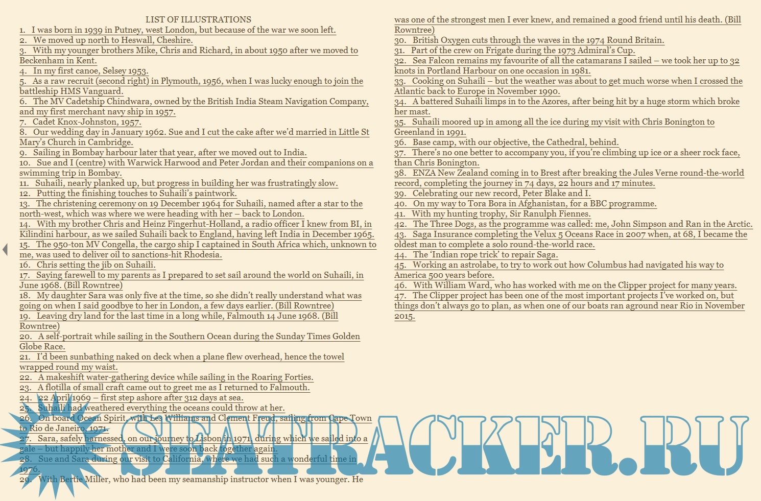 Knox-Johnston's insatiable appetite for life and adventure shines through these pages, making this book a must for all sailing enthusiasts, readers of books by Ranulph Fiennes and Chris Bonington, or for anyone who has felt that the time for putting up your feet can always be put back to another day.