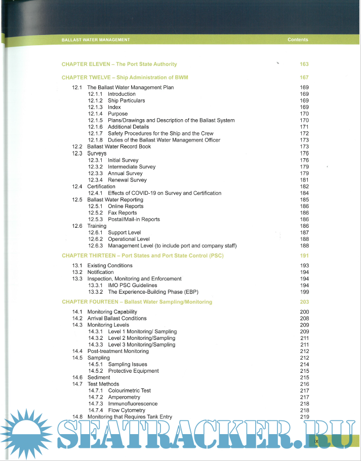 Year: 2020 Language: english Author: Witherby Genre: Guide Format: PDF Quality: Scanned pages Pages count: 467 Description: The Ballast Water Management Convention entered into force on 8th September 2017 and is now fully in effect for all applicable ships. This comprehensive guide provides up-to-date information on the regulations and equipment options available, and will assist shipowners with transition to full compliance. Of key significance in this edition is the deadline of 28th October 2020, after which point only BWMS holding a revised 2016 G8/BWMS Code Type Approval certificate are permitted to be installed. A new set of data sheets summarises the BWMS that meet this new requirement and facilitates easy comparison and evaluation of the various systems. The book discusses the methods and considerations for safe ballast water exchange. It also provides detailed information on the various treatment technologies, including physical separation; thermal, ultraviolet and plasma technologies; and deoxygenation, magnetic and ultrasonic/cavitation technologies. The book sets out the onboard requirements relating to ballast water management, including the Ballast Water Record Book, Port State Control, and ballast water sampling and monitoring. The Appendices identify key invasive species and contain updated charts illustrating current native and invasive ranges, and areas potentially at risk.