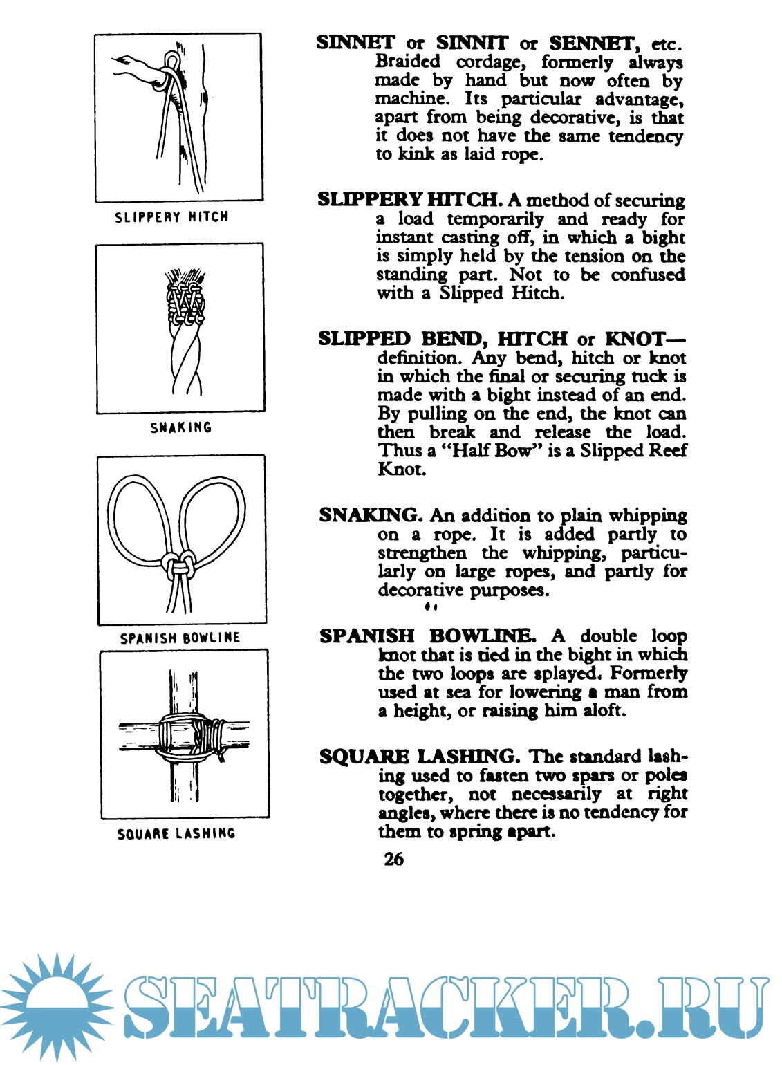 These, and many similar Questions are readily answered in this little book in which more than 130 different knots, splices and definitions find a place, with nearly one hundred illustrations. This dictionary does not attempt to illustrate nor to describe every known knot but it does cover all those likely to be used in normal rope work, pioneering! rescue and similar activities, together with most of the terminology employed in the “language of knots".