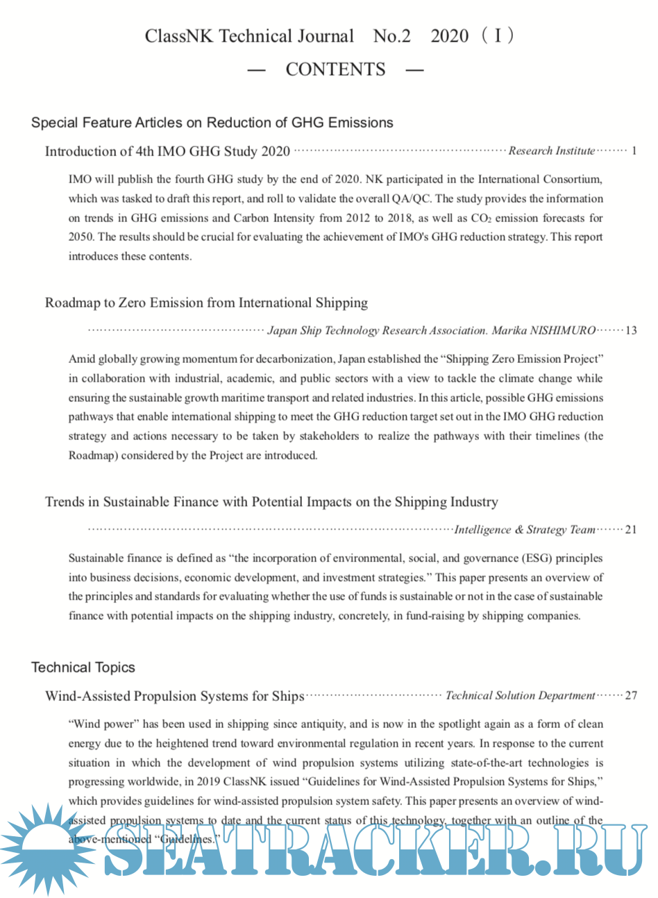 Class NK Technical Journal 2020 (Green House Gas Study 2020)
