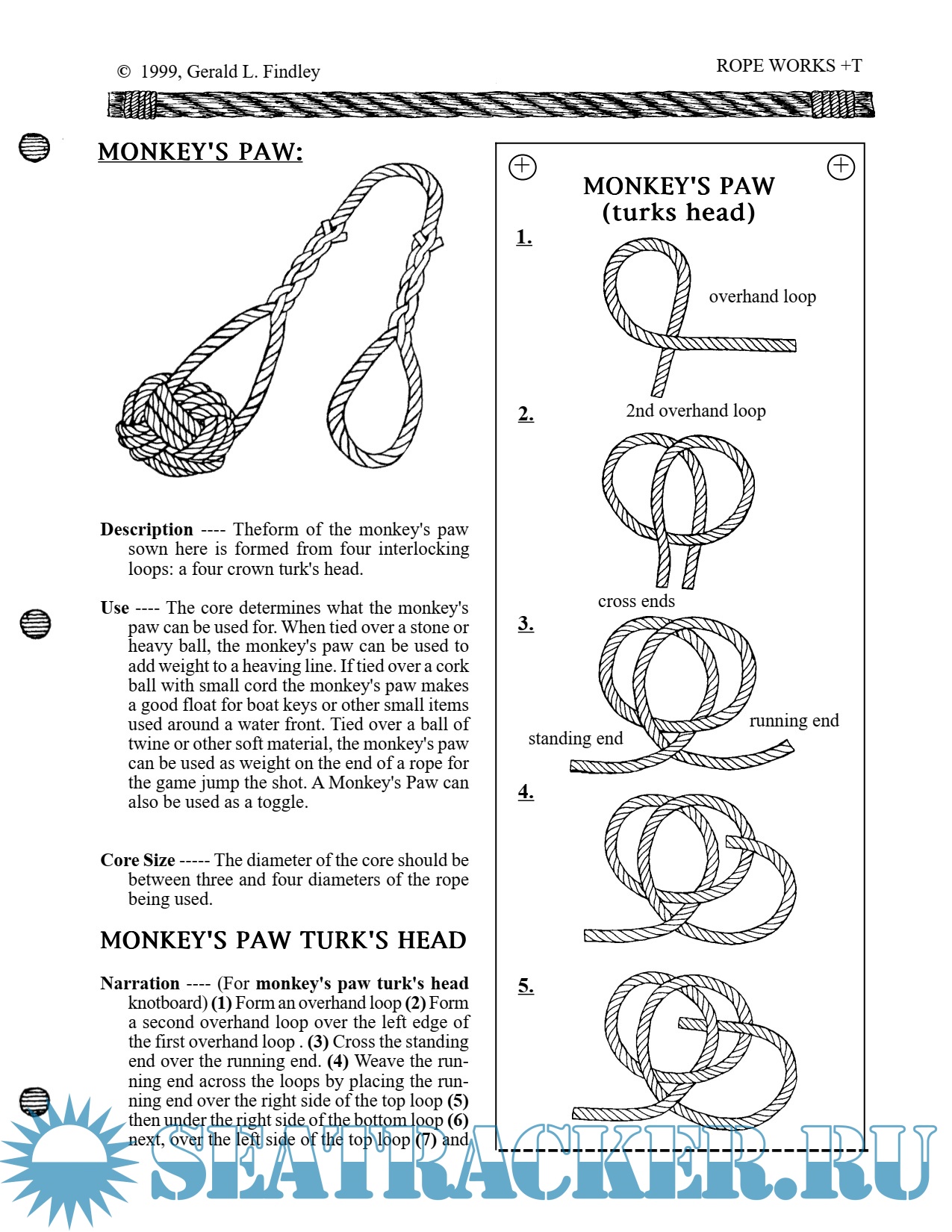 Year: 1999 Language: english Author: Findley G. Genre: Manual Publisher: BookSurge Publishing Format: PDF Quality: Scanned pages Pages count: 112 Description: Rope Works is a book of knots, hitches, splices, lashings and rope making. Rope Works presents a series of intructions illustrated in a knotboard format. The instructions are especially helpful for individuals or groups intrested in learning to tie knots with confidence. In addition, Rope Works contains plans for several different hand operated rope machines.
