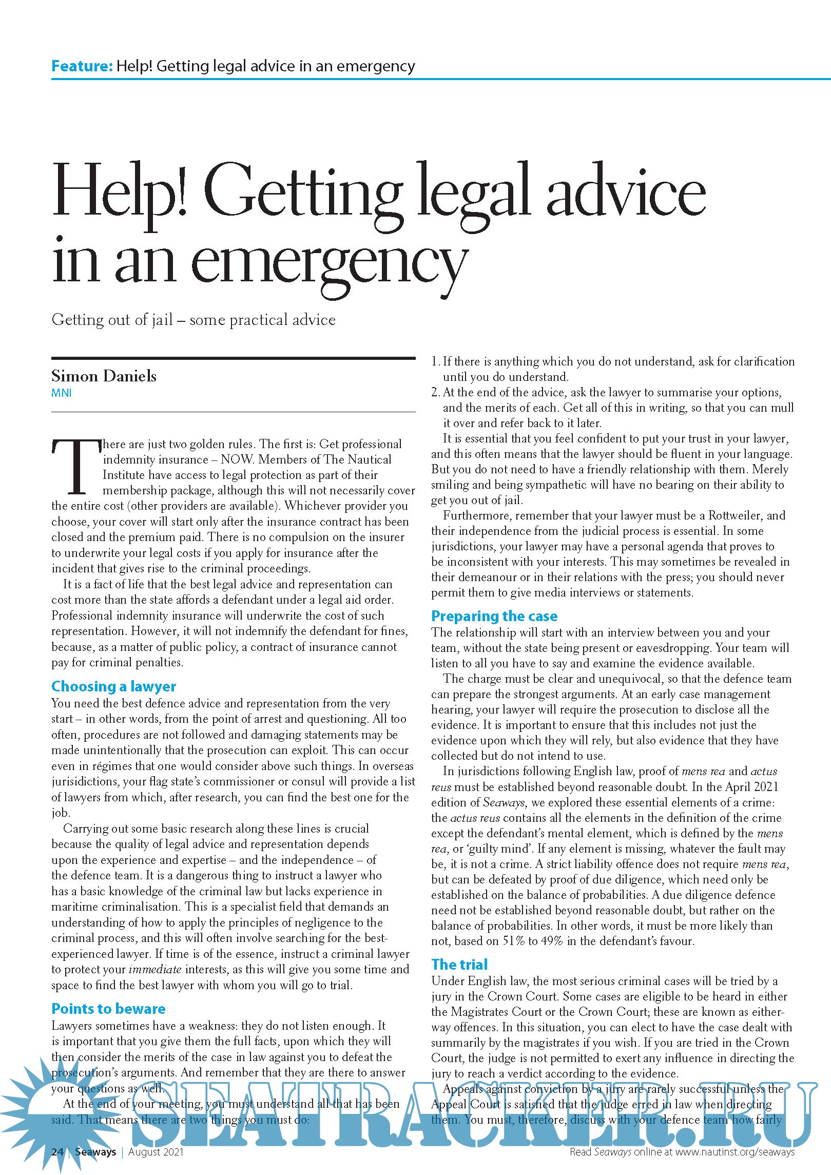 Seaways Recognised as one of the leading maritime journals, Seaways is sent out to all members monthly. It is the international journal of The Nautical Institute and has the most vibrant professional correspondence section to be found anywhere in the industry.