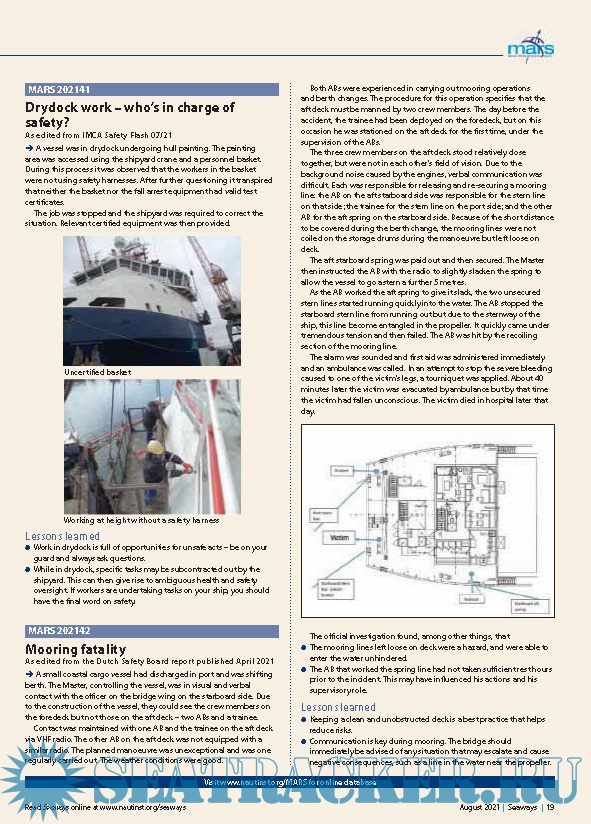 Year: 2021 Language: english Author: The Nautical Institute Genre: Periodical (magazine) Format: PDF Quality: Unknown Pages count: 40 Description: Edition August, 2021 Seaways Recognised as one of the leading maritime journals, Seaways is sent out to all members monthly. It is the international journal of The Nautical Institute and has the most vibrant professional correspondence section to be found anywhere in the industry. The vitality of the journal is shared by those who contribute to it and those who read it. It is designed to advance high professional standards and promote fellowship within the profession. This is achieved through contributions and debate directed at a practical level, designed to improve the safe and efficient operation of ships and other maritime ventures.Seaways is the vehicle which links professionals worldwide and enables members to be kept up-to-date with changes in legislation, management and technical procedures, new ideas and books, and announcements. It is also a steadying influence on impractical proposals.