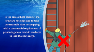 In this lessons learnt video the crew were instructed to clean the vessel’s cargo holds in preparation for the next cargo, during the procedure a seaman on top of the staging fell down suffering serious injuries.