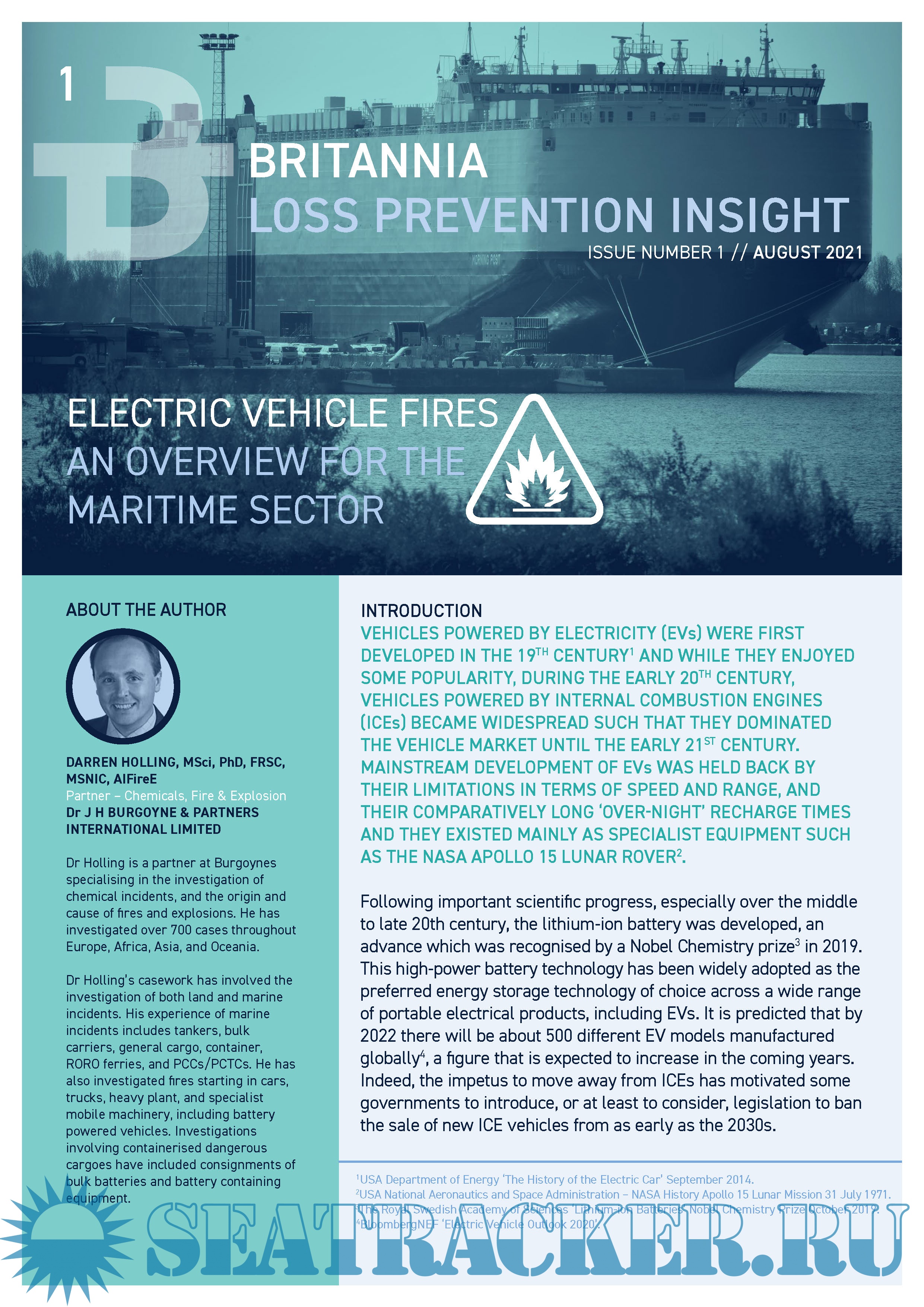 Britannia P&I Club Loss Prevention insight - Electric Vehicle Fires an Overview for the Maritime Sector.