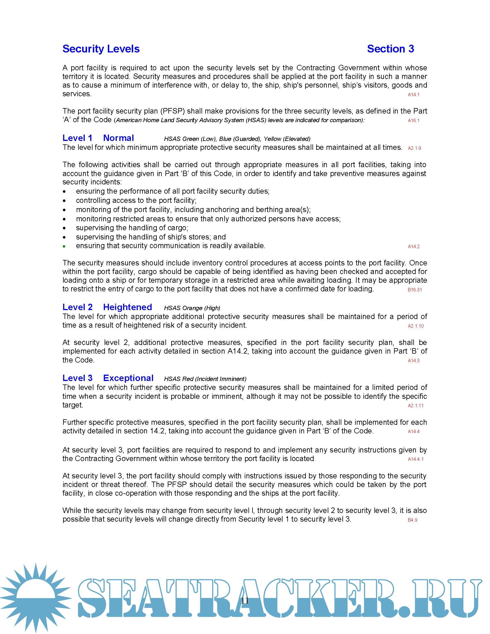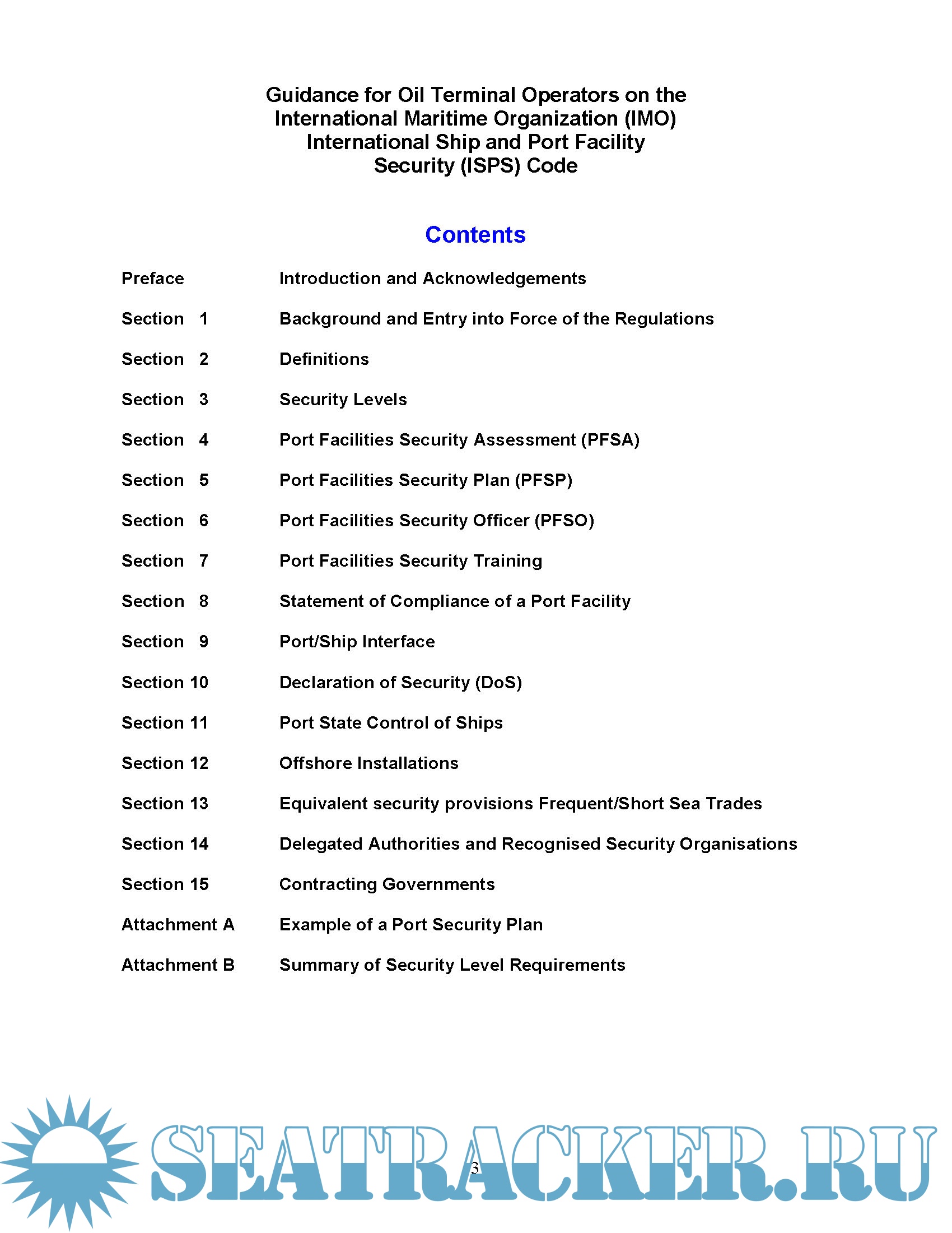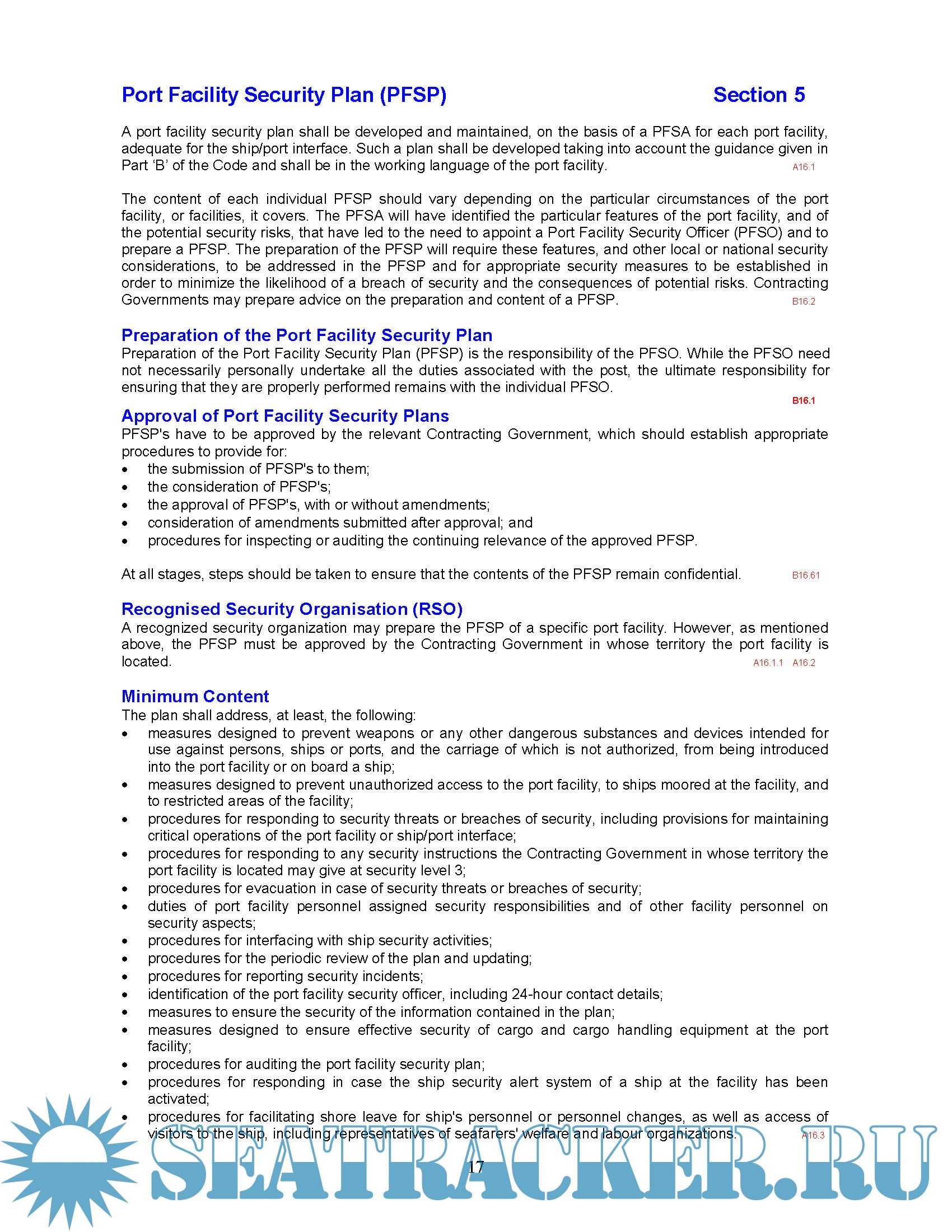 • A consolidated copy of the requirements of the ISPS Code (Parts ‘A’ & ‘B’) relating specifically to the port facility, reorganised into a topical format.
