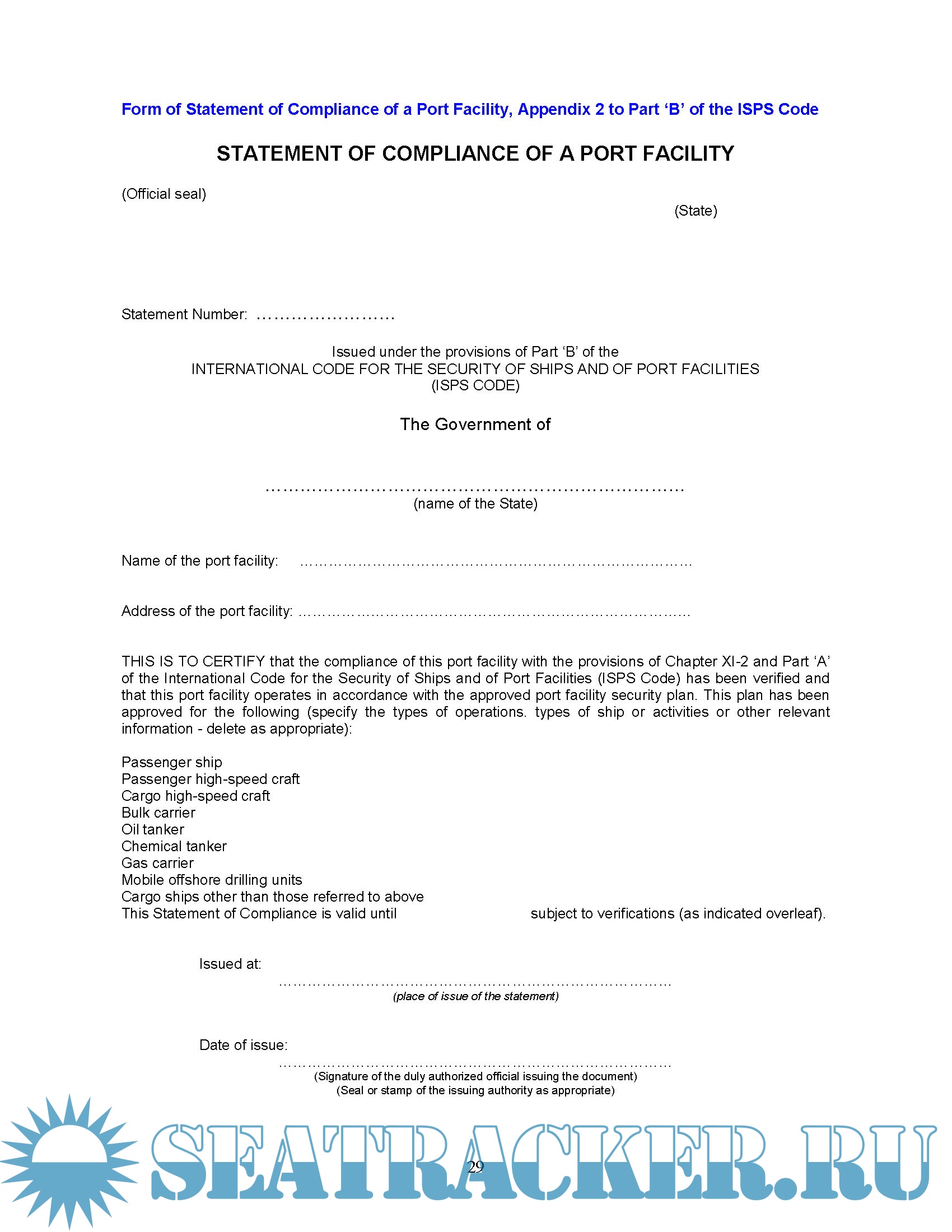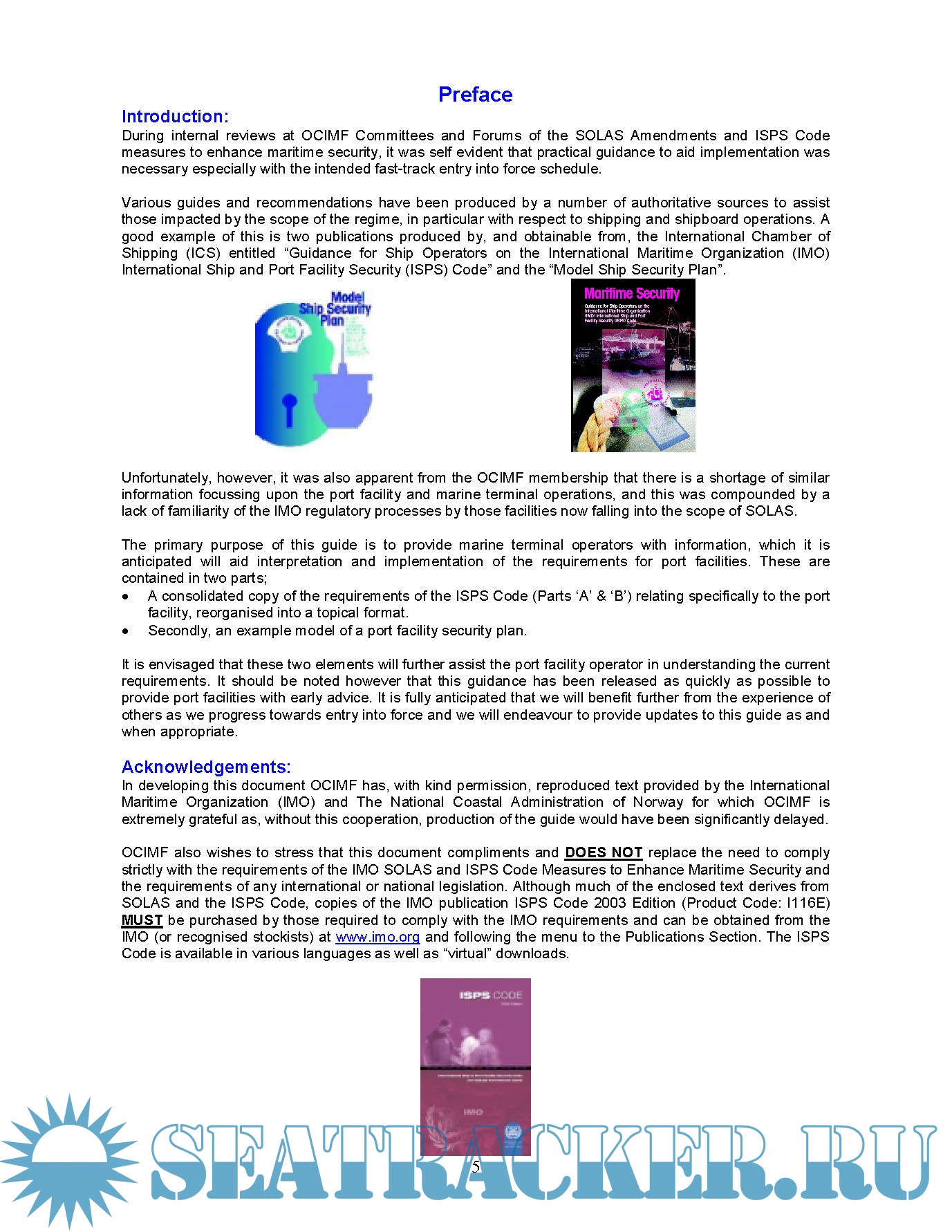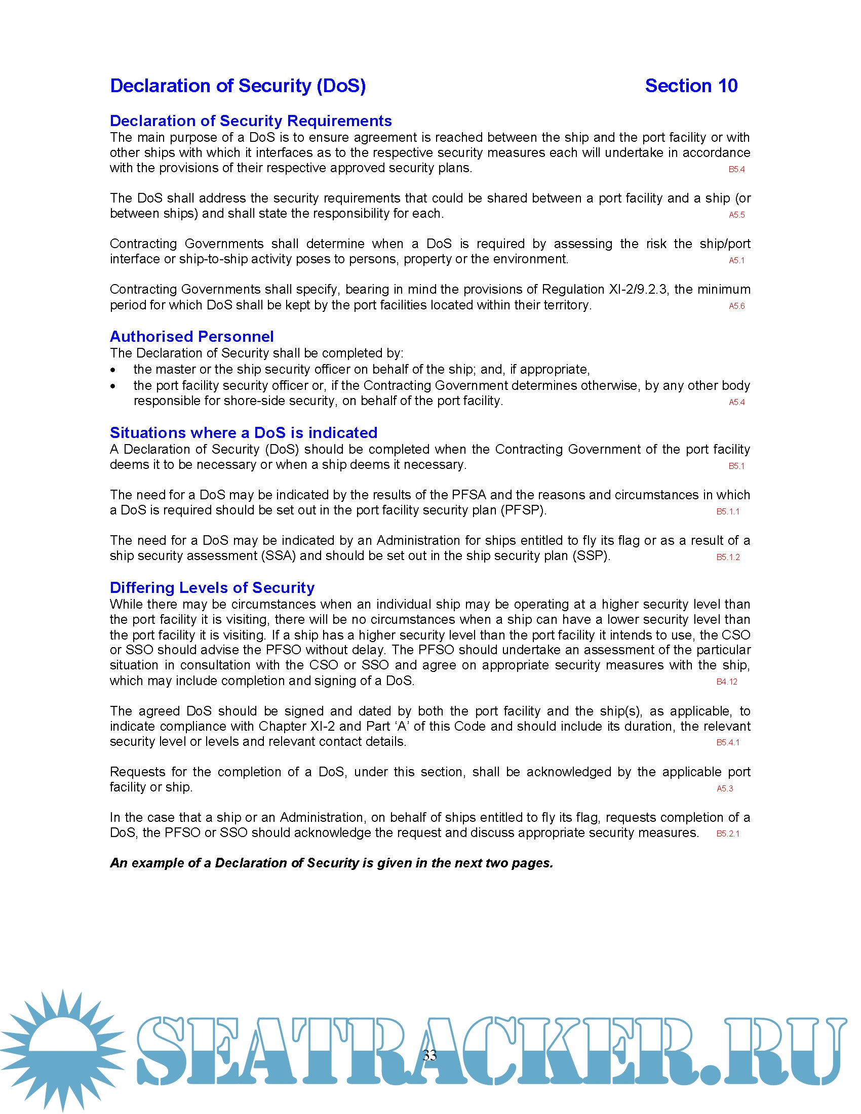 • A consolidated copy of the requirements of the ISPS Code (Parts ‘A’ & ‘B’) relating specifically to the port facility, reorganised into a topical format.