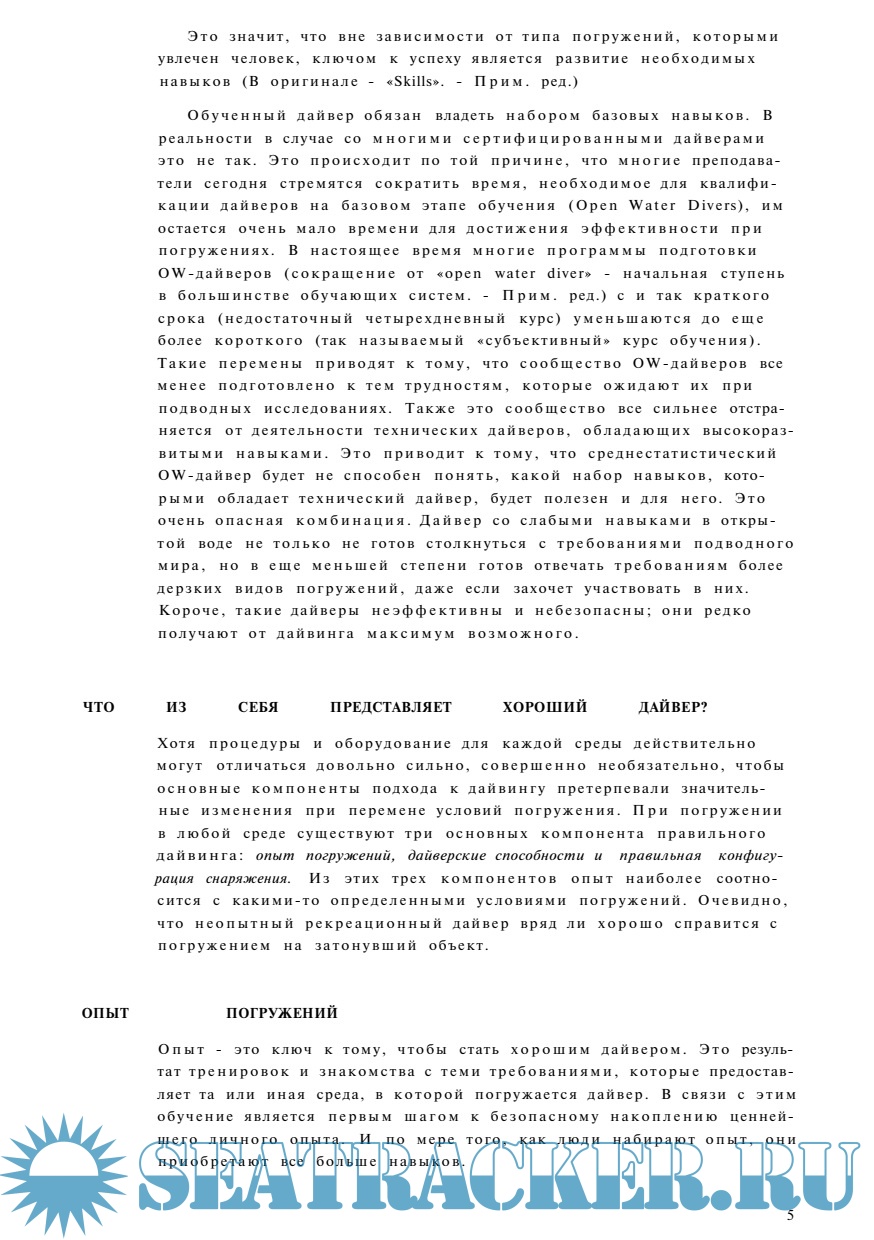 Теперь у нас есть платформа, включающая в себя информацию, навыки и методы, которые, будучи использованными как полагается, должны не только исключить 'несчастные случаи' в дайвинге, но также должны сделать процесс погружений более успешным и более того, более приятным.