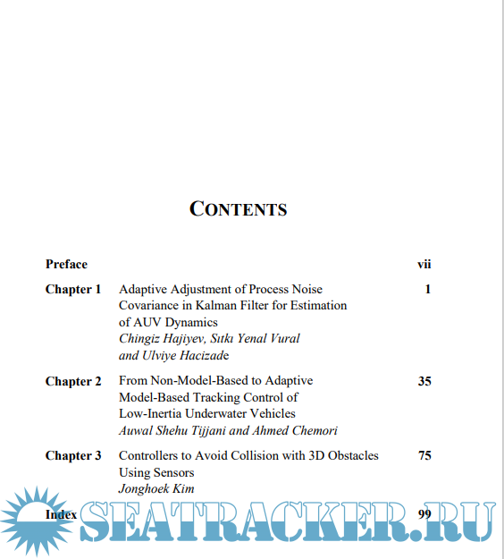 Description: Underwater Vehicles: Design and Applications first explores the application of the adaptive Kalman filter algorithm to the estimation of high speed autonomous underwater vehicle dynamics.