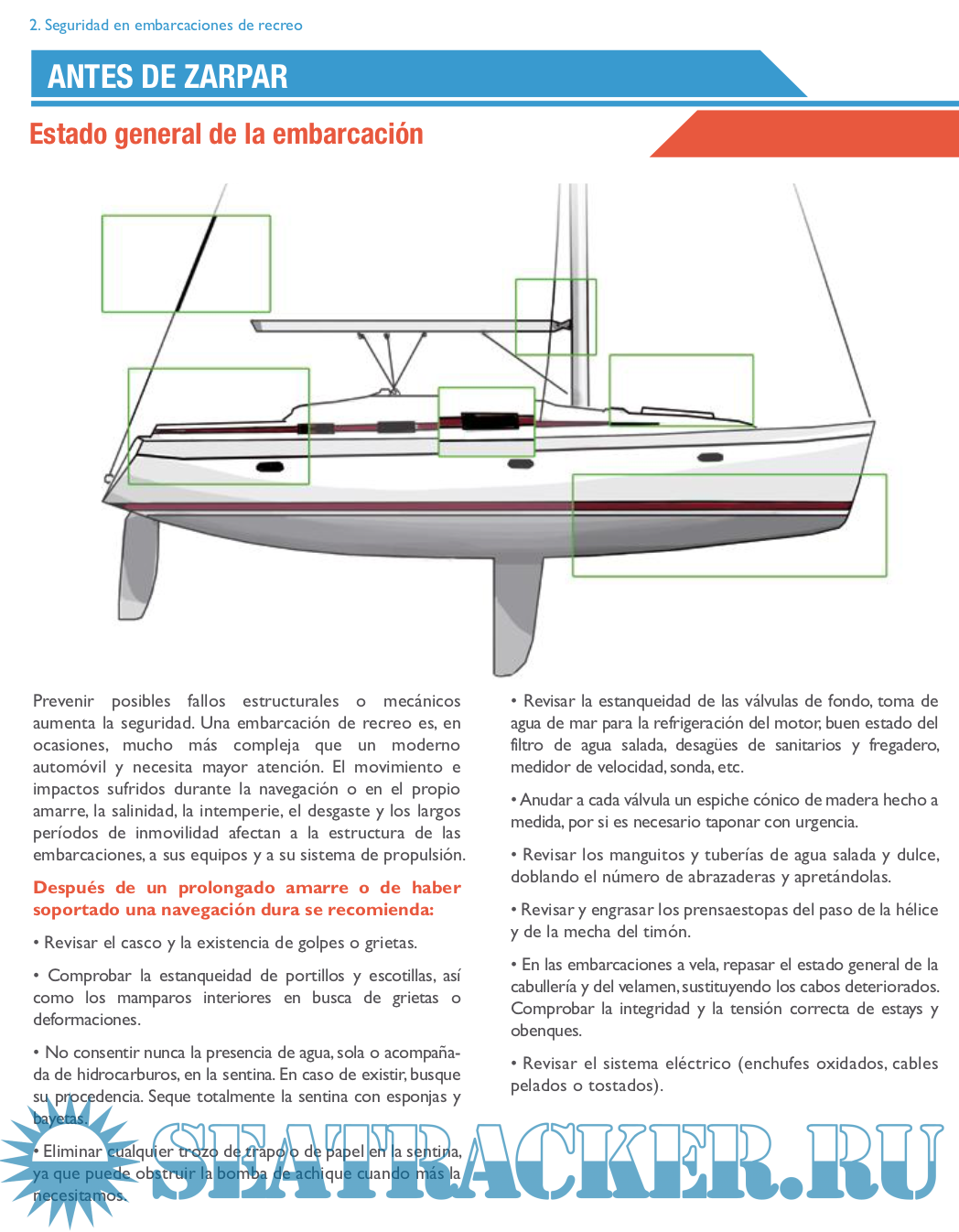 Year: 2019 Language: spanish Author: Salvamento Marítimo Genre: Guide Publisher: Salvamento Marítimo Format: PDF Quality: eBook Pages count: 56 Description: El mar es un impredecible entorno natural. A la vez que grandes satisfacciones, encierra indudables peligros que pueden prevenirse. Prevenir consiste en disminuir los riesgos potenciales sobre nuestra seguridad, reducir las posibilidades de sufrir un accidente o minimizar sus consecuencias. También es tomar conciencia de que siempre puede suceder lo peor y organizarse para no dejar nuestra seguridad en manos de la suerte. Prevenir es prepararse para reaccionar de la mejor forma ante una situación de emergencia, sin olvidar que cualquier accidente es mucho más caro que prevenirlo. Las estadísticas que Salvamento Marítimo elabora anualmente reflejan que más de la mitad de las emergencias marítimas atendidas por el servicio de salvamento se producen en embarcaciones de recreo. Leer con detenimiento esta publicación ayuda a actuar en situaciones comprometidas y saber cómo disminuir los riesgos. Contiene información imprescindible para pedir ayuda, saber cómo actuar al recibirla y cómo prestar auxilio a otros navegantes en apuros. Puede consultar esta guía, así como información complementaria sobre seguridad náutica en la página web de Salvamento Marítimo: www.salvamentomaritimo.es The sea is an unpredictable natural environment. As well as great satisfactions, it contains undoubted dangers that can be prevented. Prevention consists of reducing the potential risks to our safety, reducing the chances of suffering an accident or minimizing its consequences. It is also becoming aware that the worst can always happen and organizing ourselves so as not to leave our safety in the hands of luck. Prevention is preparing to react in the best way to an emergency situation, without forgetting that any accident is much more expensive than preventing it. The statistics that Salvamento Marítimo produces annually show that more than half of the maritime emergencies attended by the rescue service occur in pleasure boats. Reading this publication carefully helps you act in difficult situations and know how to reduce risks. It contains essential information to ask for help, know how to act when receiving it and how to help other sailors in distress. You can consult this guide, as well as additional information on nautical safety on the Salvamento Marítimo website: www.salvamentomaritimo.es