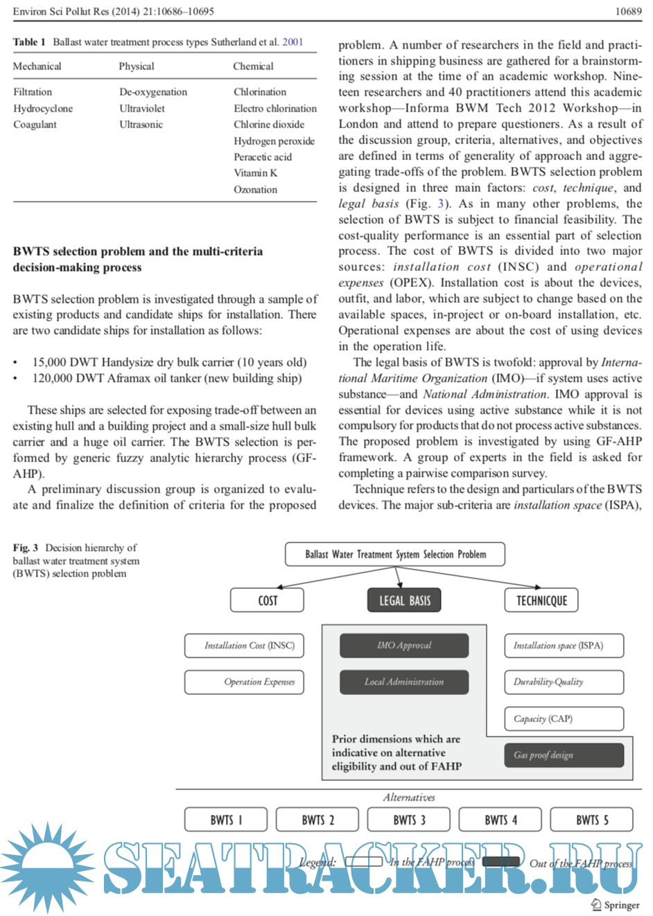 Year: 2014 Language: english Author: Tanzer Satir Genre: Research papers Publisher: Springer Format: PDF Quality: eBook Pages count: 12 Description: This paper investigates the role of ballast water treatment systems (BWTSs) and proposes a selection proce- dure for conventional merchant ships based on the financial, legal, and operational circumstances. Through the metallurgi- cal revolution of the nineteenth century, commercial ships are converted to steel hull from wooden structures. By this inno- vative shift, use of ballast water became an essential part of ships for improving propulsion and stability while reducing stress on hull (instead of rocks). However, the content of ballast water is emerged since it relocates marine species from an ecological composition (usually cargo discharging port) to another one (loading port). Uncontrolled relocation of marine species may cause severe damage to existing ecological basis on ballast discharging area. BWTSs are developed for ships to eliminate marine species (i.e., aquatic invasive species) con- tent by using a filtering device. It ensures an eco-friendly ballasting and de-ballasting process. The selection of proper BWTS is another debate since the BWTSs are designed with cost-quality and cost (eco)-performance variations. The pro- posed approach denoted that both tonnage and the age of ship are indicative factors on selection. The cost of installation varies based on installation space and active vs. project vessel cases.
