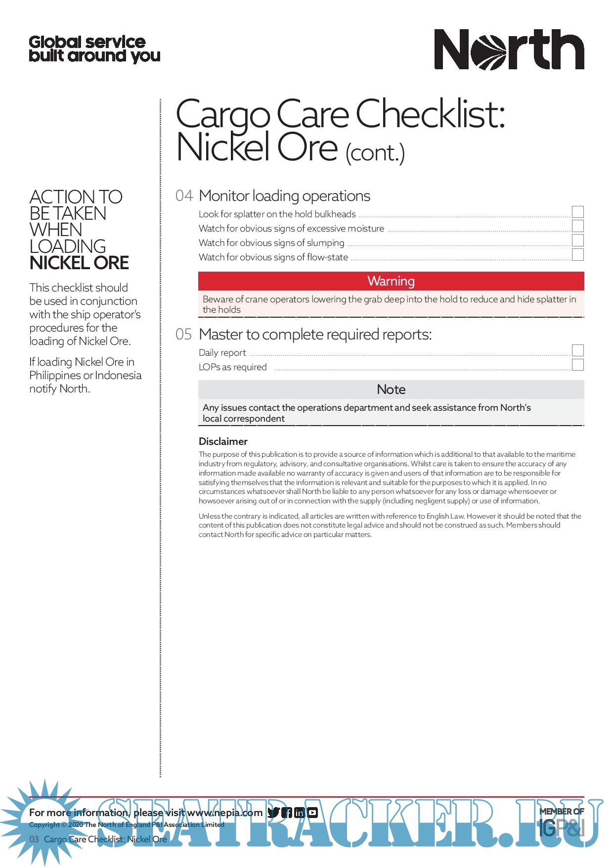 Cargo Care Checklist: Nickel Ore [updated] - NorthStandard [2024, PDF]