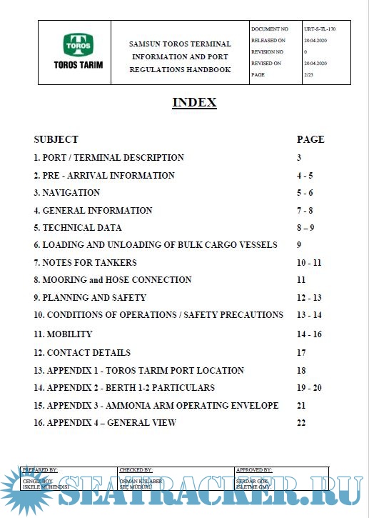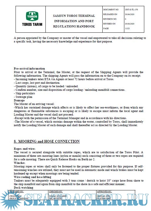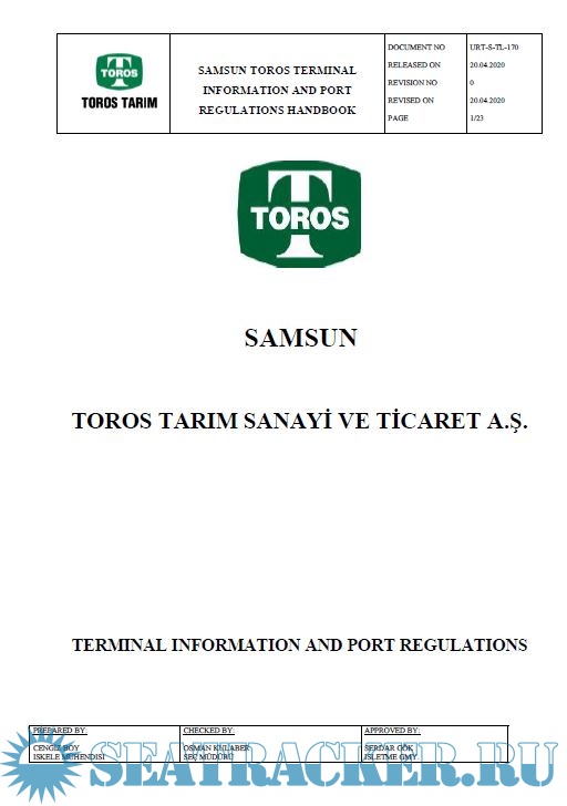 Information and Port Regulations Handbook for Toros Terminal, Samsun, Turkey