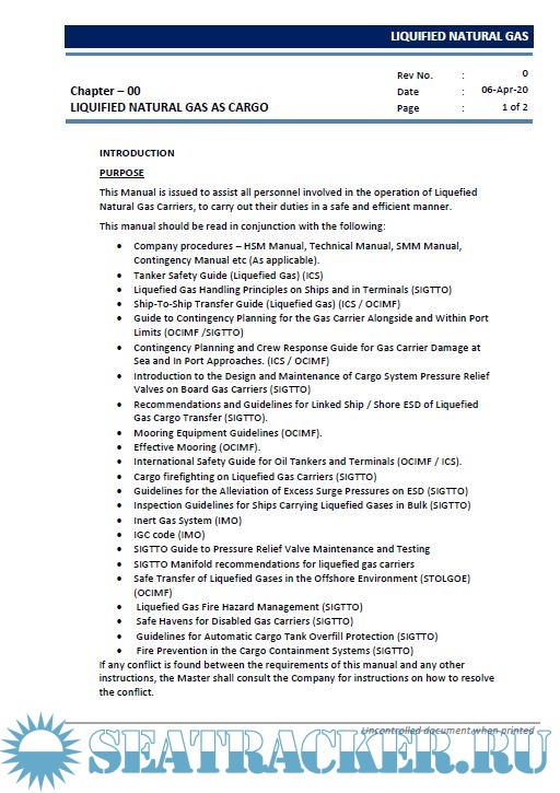 Description: This Manual is issued to assist all personnel involved in the operation of Liquefied Natural Gas Carriers, to carry out their duties in a safe and efficient manner.