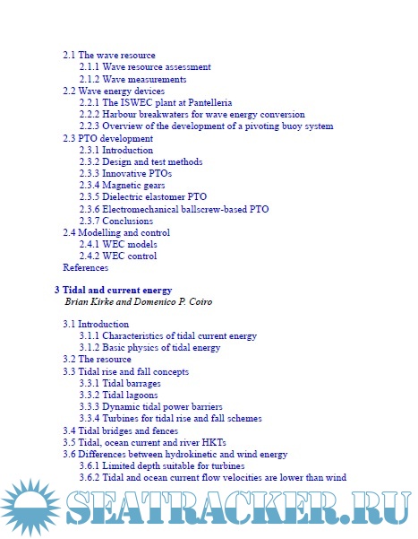 Year: 2019 Language: english Author: Domenico Coiro and Tonio Sant Genre: Manual Publisher: The Institute of Engineering and Technology Edition: 1st ed. ISBN: 1785617664 Format: EPUB Quality: eBook Pages count: 480 Description: There are many ways to harness the renewable and emissions-free energy available from the Earth's oceans. The technologies include wave energy, tidal and current energy, and energy from thermal and salinity gradients. In addition, offshore wind energy and marine (floating) solar arrays offer a possibility to exploit vast resources that are far larger than those available onshore. The potential capacities range from many hundreds of gigawatts to terawatts of generation. These technologies could contribute a significant part to the global electricity demand; they are particularly suitable for providing sustainable power to marine regions and island communities and nations. This book brings together contributions from international experts with academic and industry backgrounds to provide a systematic overview of ocean energy technologies, their readiness and modeling, as well as installation and grid connection technologies.