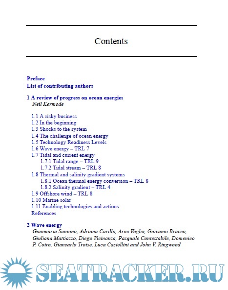 Description: There are many ways to harness the renewable and emissions-free energy available from the Earth's oceans. The technologies include wave energy, tidal and current energy, and energy from thermal and salinity gradients. In addition, offshore wind energy and marine (floating) solar arrays offer a possibility to exploit vast resources that are far larger than those available onshore. The potential capacities range from many hundreds of gigawatts to terawatts of generation. These technologies could contribute a significant part to the global electricity demand; they are particularly suitable for providing sustainable power to marine regions and island communities and nations.