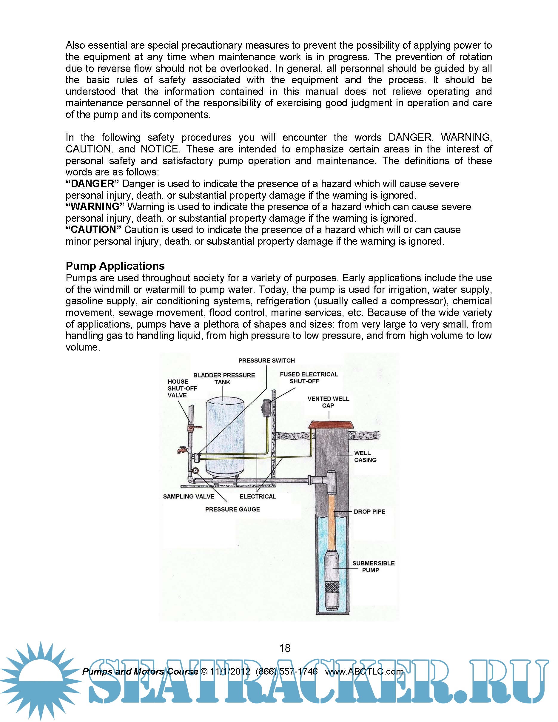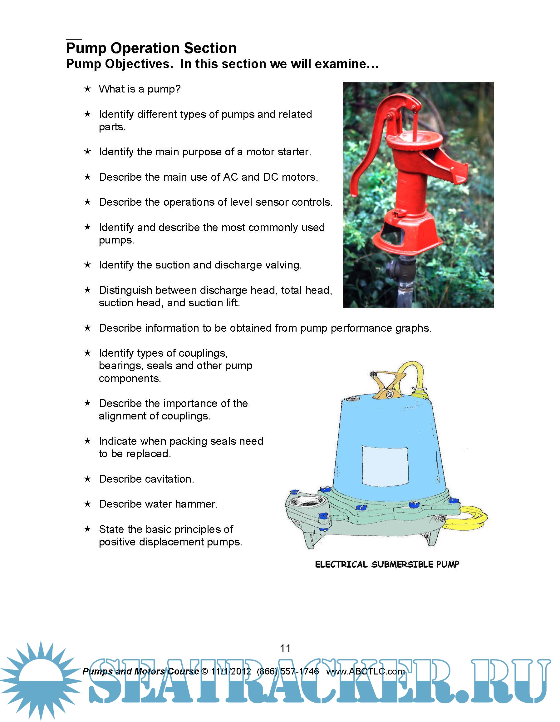 Year: 2012 Language: english Author: Technical Learning College Genre: Training courses Publisher: Technical Learning College ISBN: 978-0-9799559-6-9 Format: PDF Quality: eBook Pages count: 370 Description: This Pumps and Motors CEU Training Course will review various pump and motor operations, starting with proper hydraulic sizing and electrical demand requirements and advancing to the electrical power and other related hydraulic components of pumping water. This course will present the student the engineering science pertaining to liquid pressure, flow and pumping dynamics. This course will cover the basics of hydraulic fundamentals commonly related to the study of the mechanical properties of water. This course will also examine hydrostatics or fluid mechanics as well as the history and development of pumps, hydraulics and the science of fluids. This training course will present several familiar topics in pumping along with hydraulics and hydrostatics that often appear in most educational expositions of introductory science, and which are also of historical interest and can enliven a student’s educational experience. You will not need any other materials for this course. Water Distribution, Well Drillers, Pump Installers, Water Treatment Operators, Wastewater Treatment Operators, Wastewater Collection Operators, Industrial Wastewater Operators and General Backflow Assembly Testers. The target audience for this course is the person interested in working in a water or wastewater treatment or distribution/collection facility and/or wishing to maintain CEUs for certification license or to learn how to do the job safely and effectively, and/or to meet education needs for promotion. Additional info: You can obtain a printed version from TLC for an additional $79.95 plus shipping charges.