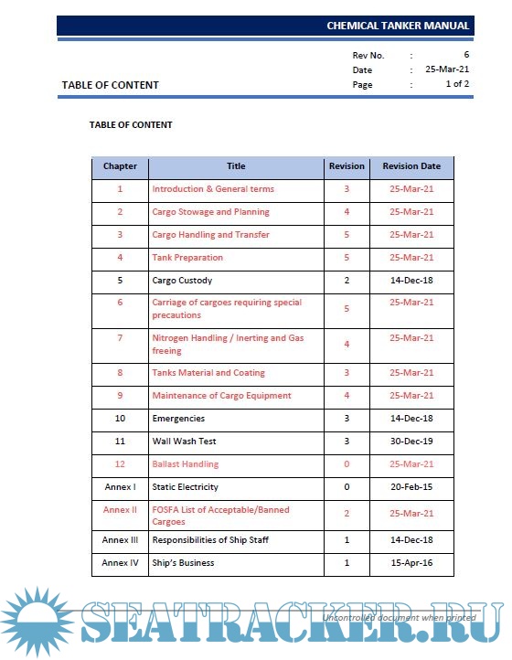 Description: This Manual is issued to assist all personnel involved in the operation of Chemical Tankers which are complex vessels designed to transport a wide range of cargoesand a large number of segregated products simultaneously.