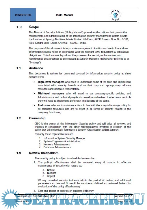 Description: The purpose of this document is to provide management direction and control to address information security needs in accordance with the relevant laws, regulations & contractual obligations. This document lays down the processes for security enhancement and recommends best practices to be followed.
