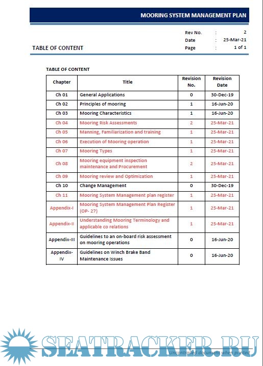 • Records of mooring equipment, including all permanent and loose items and its 'as built' design basis, to be retained by the ship throughout its lifecycle (the Mooring system management plan register - MSMPR).