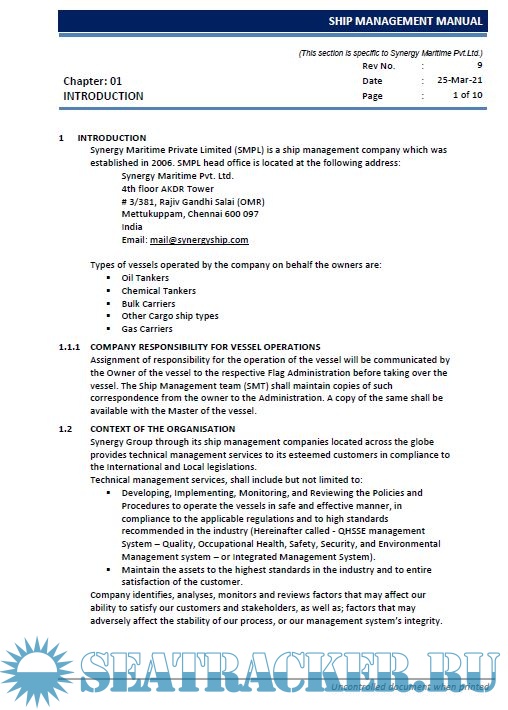 Ship Management Manual - Synergy Maritime Pvt. Ltd. [2022, PDF]