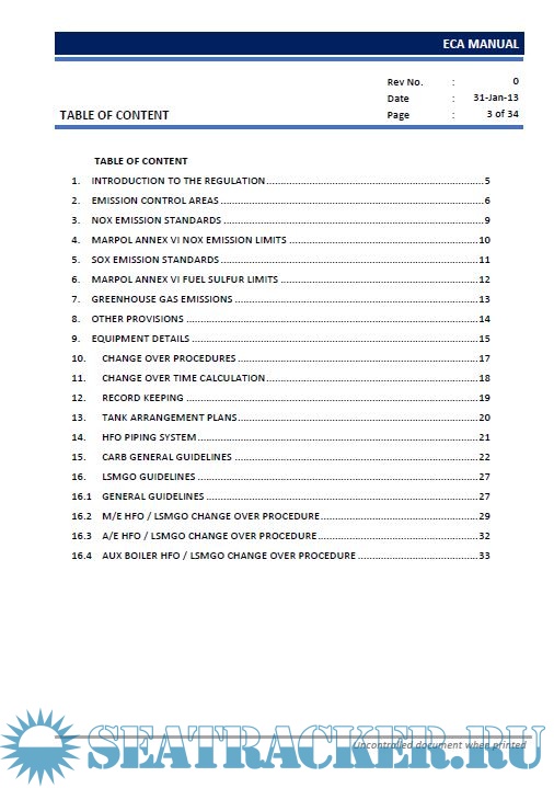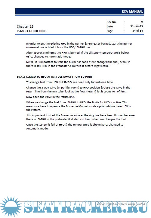 Description: Procedures for the Control of Sulphur Oxide (SOx) Emission in Emission Control Areas (ECA) in compliance with Annex VI of MARPOL 73/78.
