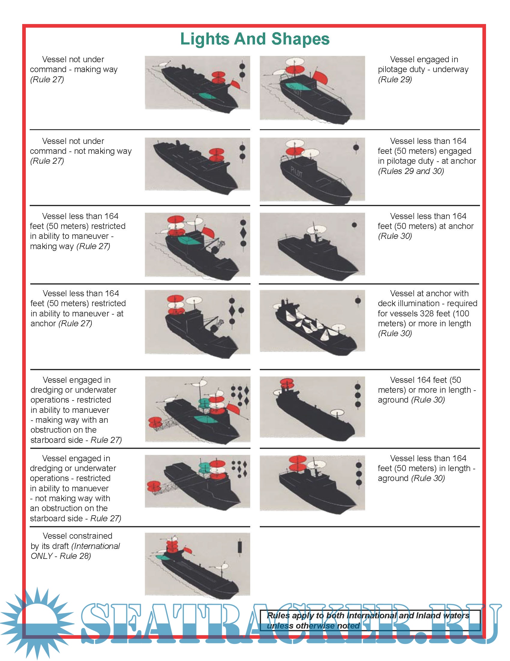 Rule numbers cited refer to the rules from which information was extracted. This guide is not intended as a substitute for the actual Navigation Rules International – Inland (Commandant Instruction M16672.2D)