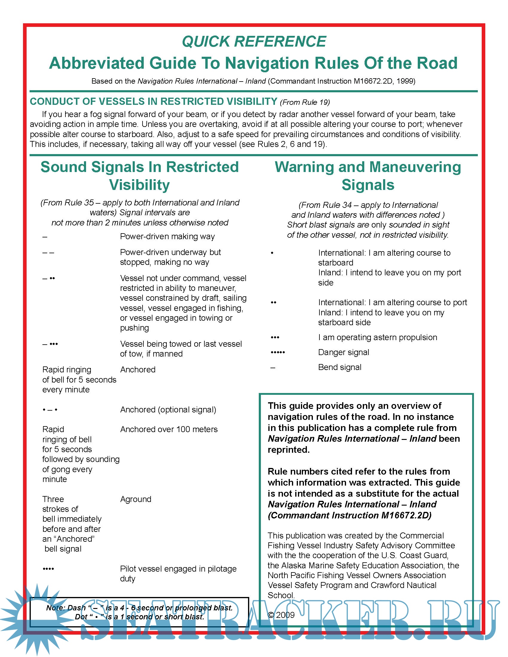 Description: QUICK REFERENCE : Abbreviated Guide To Navigation Rules Of the Road