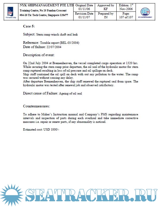 NMC 20: Machinery Management Training for Junior Engineers (3.5 Days) - NYK Maritime College [2008,…