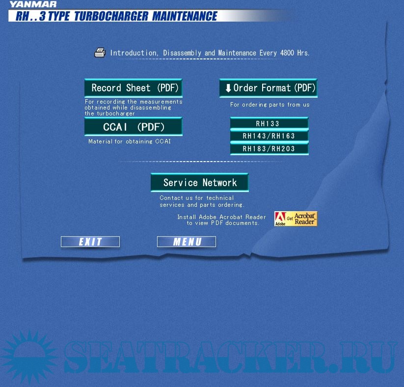 Description: Yanmar RH..3 Type Turbocharger Maintenance movies and slides alongwith operation manuals.