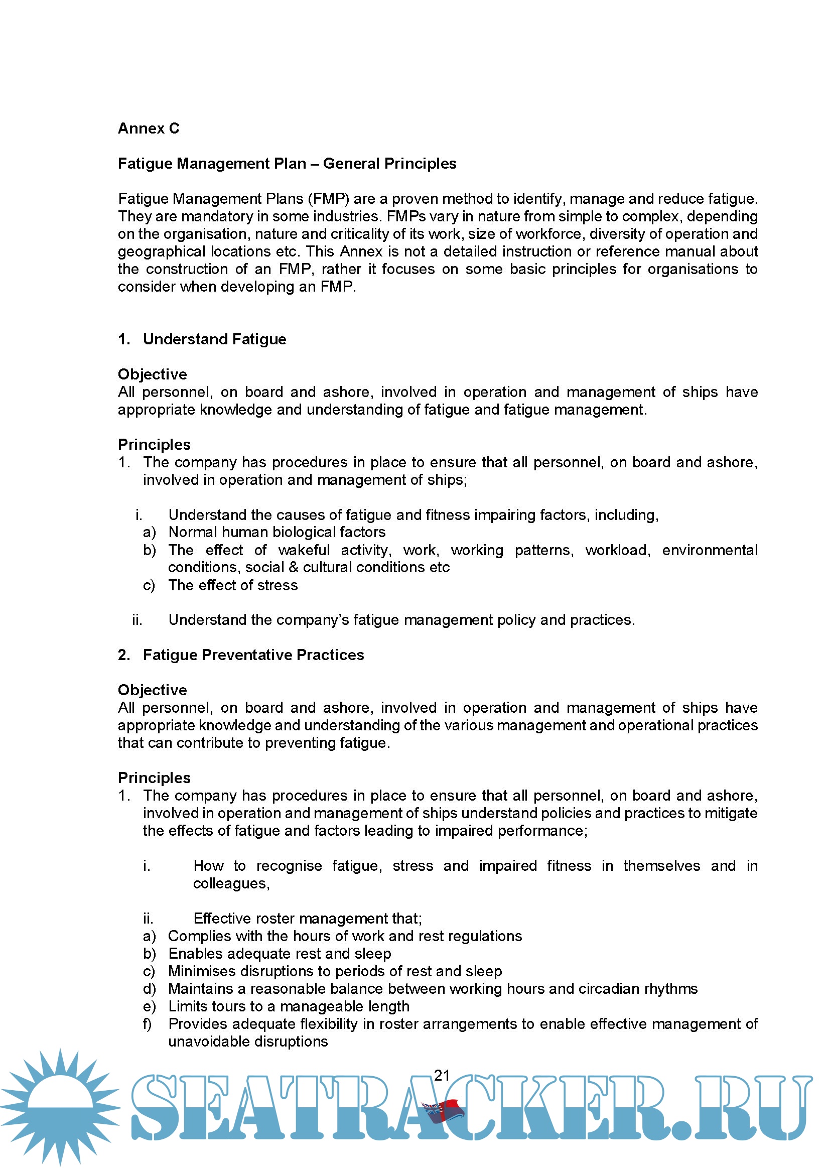 MARINE GUIDANCE NOTE MGN 505 (M) Amendment 1 HUMAN ELEMENT GUIDANCE- PART 1 Fatigue and Fitness for Duty.Published: April 2021
