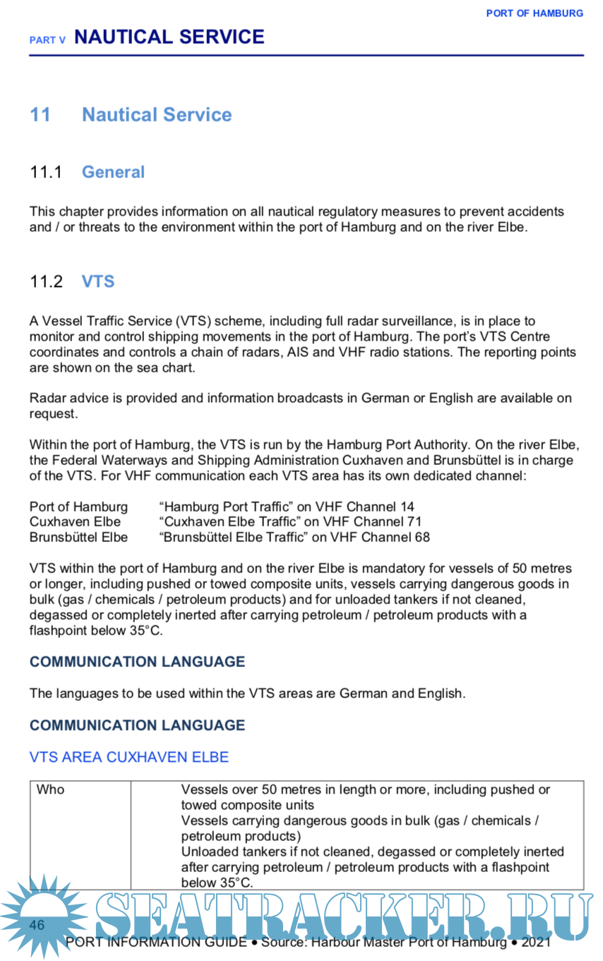 Description: Welcome to the port of Hamburg! Stretching across an area of 87 sq. km, it is one of the largest ports in the world. Our principal responsibility is to ensure the safe passage of every ship both in the port of Hamburg and on its approach channels, and we continuously strive to improve our services.