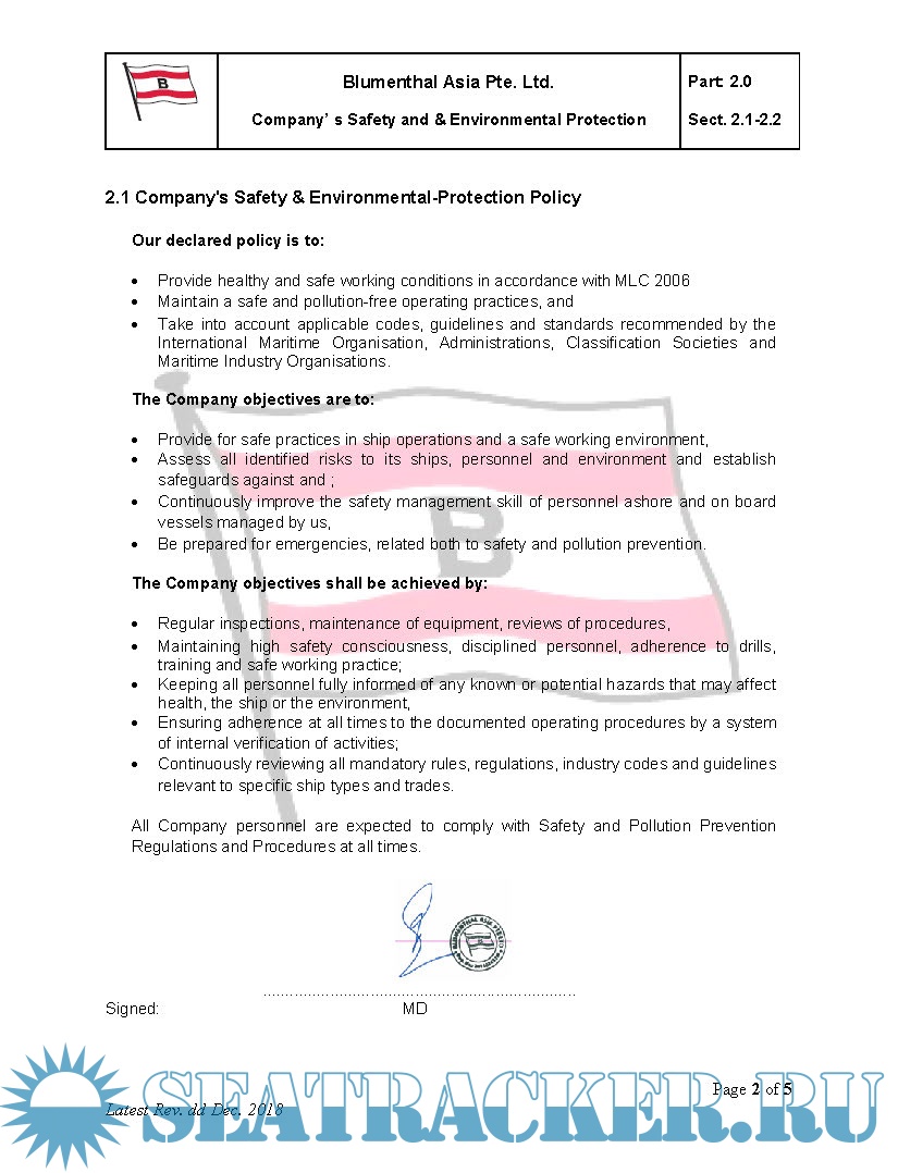 Description: Safety Management System (SMS) Ship Manual