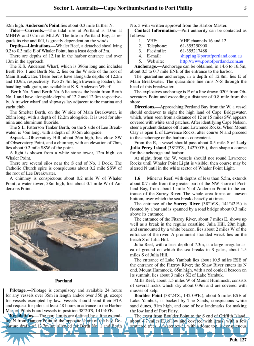 Year: 2017 Language: english Author: National Geospatial-Intelligence Agency Genre: Documentation Publisher: National Geospatial-Intelligence Agency Edition: 40 Format: PDF Quality: eBook Pages count: 346 Description: Pub. 127, Sailing Directions (Enroute) East Coast of Australia and New Zealand, Fourteenth Edition, 2017, is issued for use in conjunction with Pub. 120, Sailing Directions (Planning Guide) Pacific and Southeast Asia. Companion volumes are Pubs. 125 and 126. Digital Nautical Charts 5 and 6 provide electronic chart cov- erage for the area covered by this publication. This publication has been corrected to 1 April 2017, includ- ing Notice to Mariners No. 13 of 2017. Subsequent updates have corrected this publication to 21 August 2021, including Notice to Mariners No. 34 of 2021