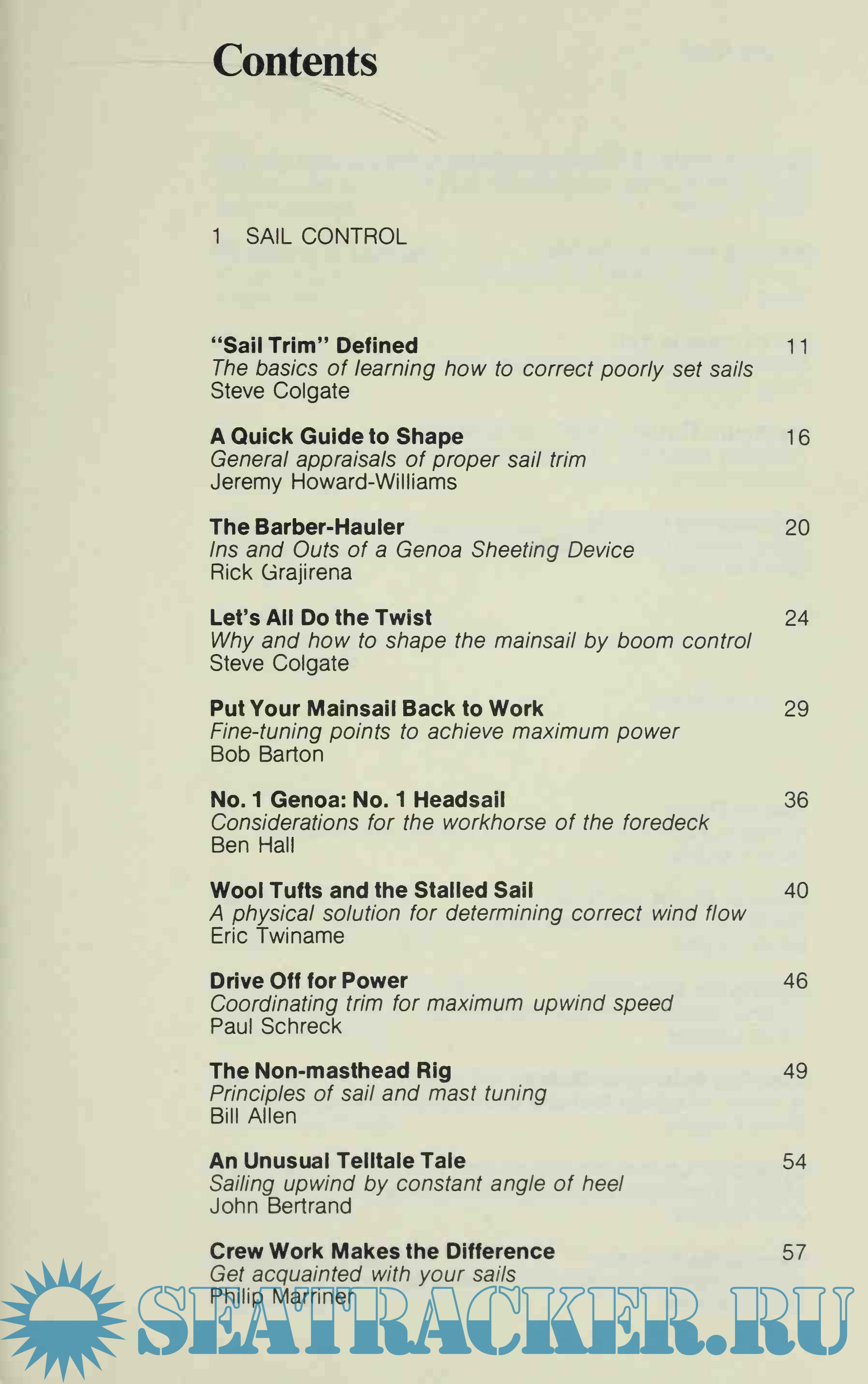 Year: 1979 Language: english Author: Edited by Anne Madden Genre: Guide Publisher: Sail Books, Inc Edition: First ISBN: 0-914814-18-4 Format: PDF & EPUB Quality: Scanned pages Pages count: 294 Description: More SAIL Trim • An all-new anthology of 47 outstanding articles from five years of SAIL Magazine • Fully illustrated with over 200 drawings, photos, and diagrams • Covers shape, balance, downwind sailing, heavy weather, design and maintenance, rigging and deck layout, and aerodynamic theory • Filled with solid ideas and advice for expert Additional info: PDF + EPUB