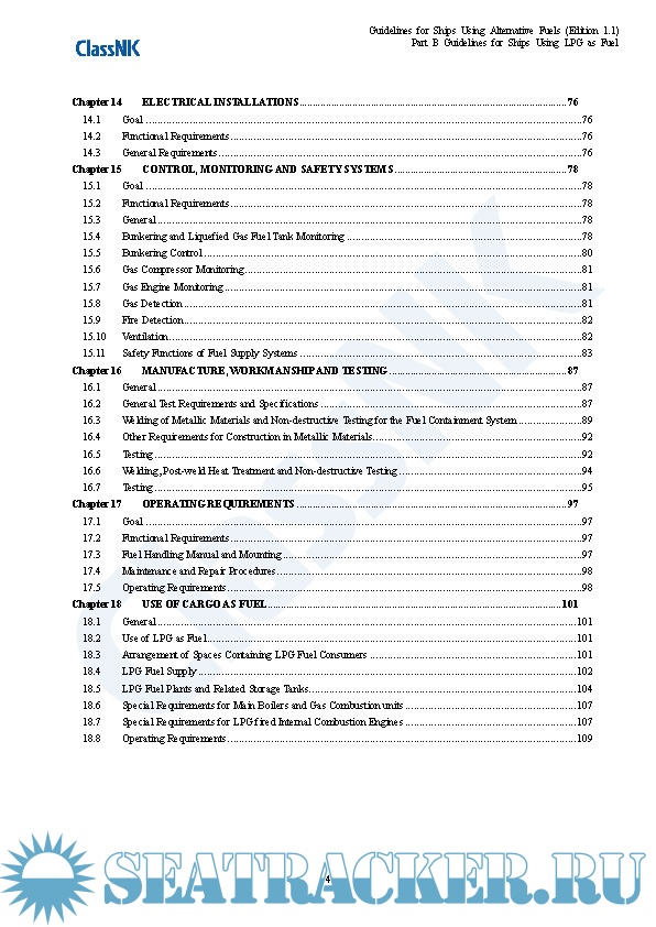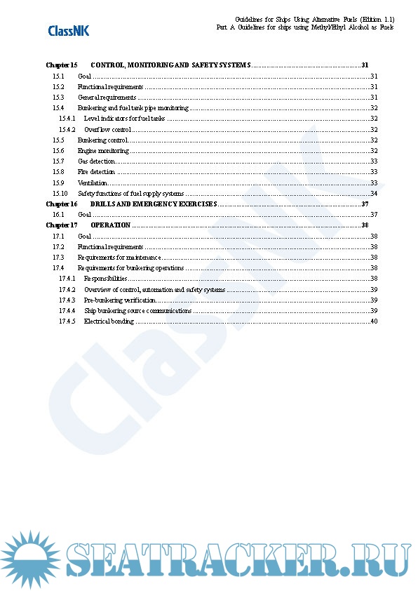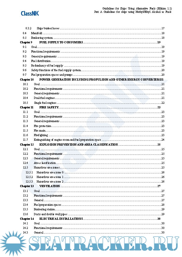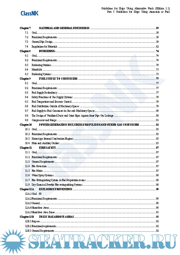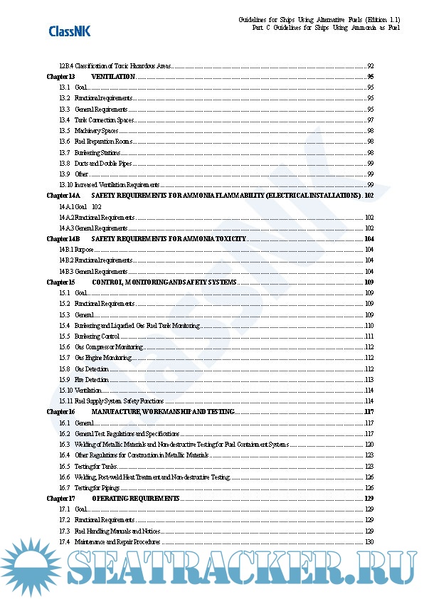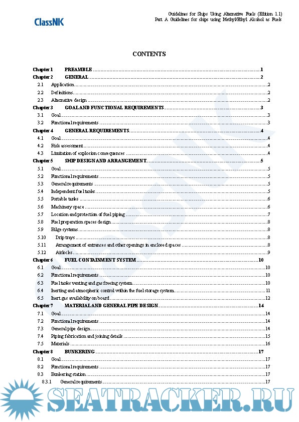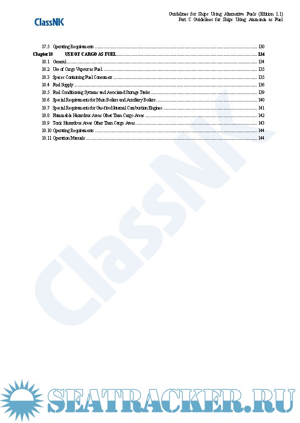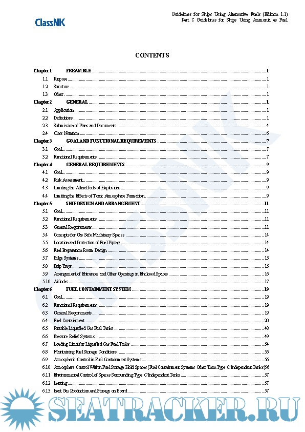 Year: 2021 Language: english Author: ClassNK Genre: Guide Edition: 1.1 Format: PDF Quality: eBook Pages count: 325 Description: Edition September 2021 Part A. These guidelines provide provisions for the arrangement, installation, control and monitoring of machinery, equipment and systems using methyl/ethyl alcohol as fuel to minimize the risk to the ship, its crew and the environment, having regard to the nature of the fuels involved. Part B. These guidelines provide provisions for the arrangement, installation, control and monitoring of machinery, equipment and systems using LPG as fuel to minimize the risk to the ship, its crew and the environment, having regard to the nature of the fuels involved. Part C. The Guidelines for Ships Using Ammonia as Fuel (hereinafter referred to as “the Guidelines”) makes reference to requirements specified in SOLAS, the IGC Code and the IGF Code with a view to minimizing the risks to ships, seafarers and the environment in consideration of the particular characteristics of ammonia as well as the standards for the equipment (including associated control and monitoring systems) installed on board ships using ammonia as fuel, which have been independently established by the Society up until now. The Guidelines is intended to be helpful with respect to the implementation of alternative designs as well as the submission of requests for approval to Flag State Administrations related to the use of ammonia as fuel. Although this version of the Guidelines was primarily developed based on currently available information, the Society intends to regularly review and update it as deemed necessary so as to fully incorporate the knowledge obtained from future operational data and research and development results to ensure that the information contained therein does not become outdated or otherwise inaccurate. Annex. This annex applies to ships classed with the Nippon Kaiji Kyokai (hereinafter referred to as “the Society”), that take measures beforehand in preparation for possible future conversion to the becoming a ship using alternative fuel for which an application to affix relevant notation to the ship’s classification characters is made. The term “measures” in this context means that the ship has either a concept design for future conversion, or both a concept design and detailed design for partial facilities related to alternative fuel use and associated installations. Hereinafter, such measures are referred to as “Alternative Fuel Ready”, and this also applies to ships using alternative fuels that are designed for the use of other alternative fuels in the future. :