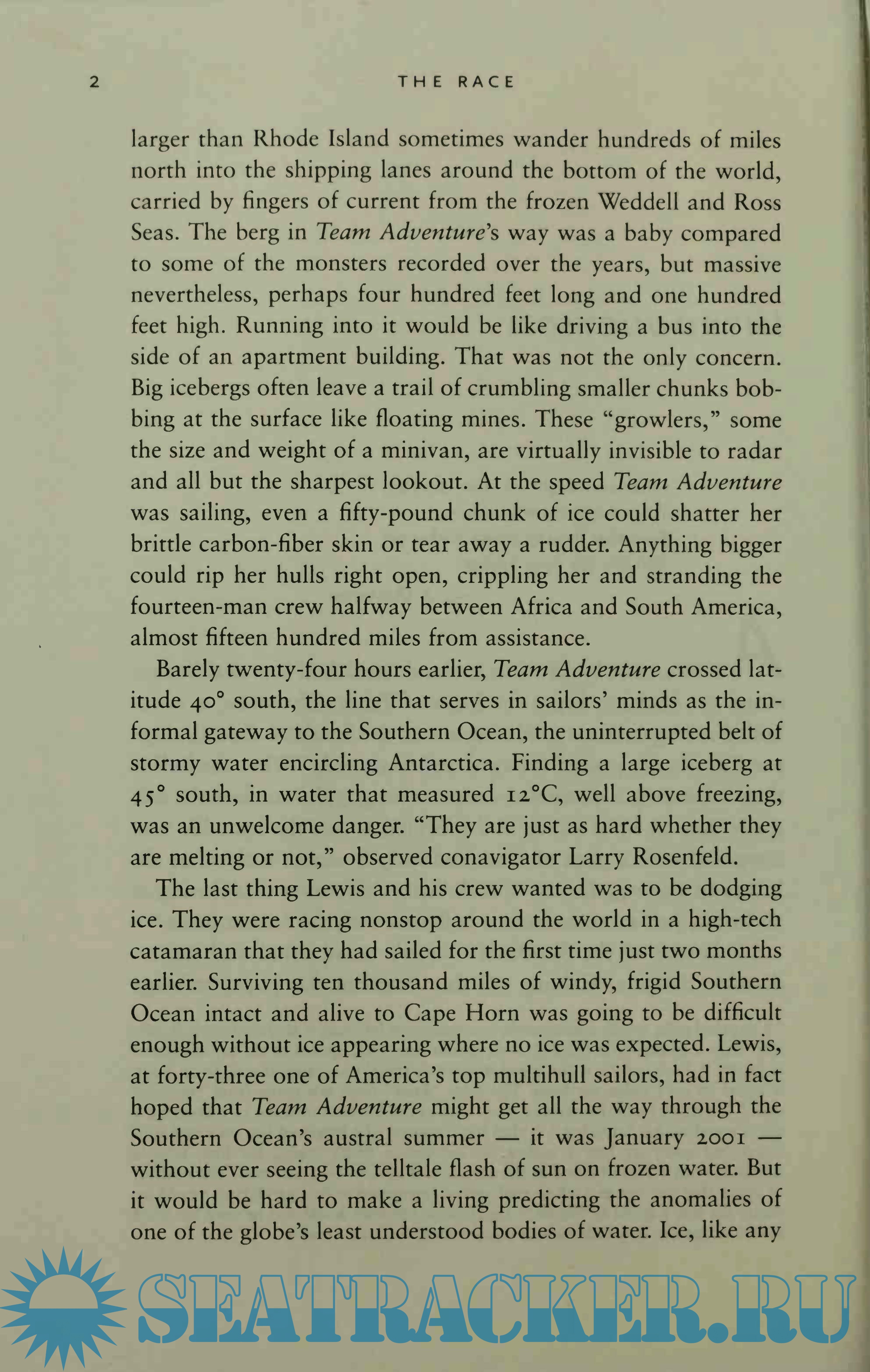 Year: 2002 Language: english Author: Tim Zimmermann Genre: History Publisher: Mariner Books Edition: First ISBN: 0-618-11748-2 Format: PDF + EPUB Quality: Scanned pages Pages count: 358 Description: Experienced sailor and Outside correspondent Zimmermann brings readers to a maritime marathon that circumnavigates the globe in sailing ships that travel up to 50 mph. With winning skippers grabbing monthly purses in excess of $20,000 and massive corporate sponsorship (PlayStation, Team Phillips and Club Med were some of the ships in the running), it should be no surprise that the event drew international recognition. Zimmermann elucidates the technical advancements of racing vessels from clipper ships to yachts to today's high-tech "maxi-catamarans." Armed with GPS systems, the personalities of multimillionaires and crews of 20, six such ships embarked from Barcelona on New Year's Eve 2000, racing past the equator and through the treacherous Southern Ocean to round Cape Horn and onward to port in Marseilles. Zimmermann keeps up the pace with a rapid play-by-play of the race as its contenders fight doldrums, stomach bland diets and dodge gigantic icebergs; he describes how the delicately balanced twin hulls of the maxi-catamarans faced easy damage in severe waves and poor weather. In the end, only two of the ships completed the voyage. Despite Zimmermann's technical moxie, the dramatic flair here is surprisingly lackluster and the story floods into an obligatory tale of man's embittered drive to conquer the elements. A sure bet for maritime racing fans and extreme sporting enthusiasts, the book might not have enough ballast to float the open waters of mainstream readers. You don't have to be a racing sailor to love this book. Armchair racing sailors can get a tremendous lift from reading the challenges these sailors face. In the polar seas of the Southern Ocean and the financial boardrooms, the opposition is tremendous. Nothing like pouring vast sums of money into a hole in the ocean, then being bested by Mother Nature. Kept me up at night shivering, and loved every minute.