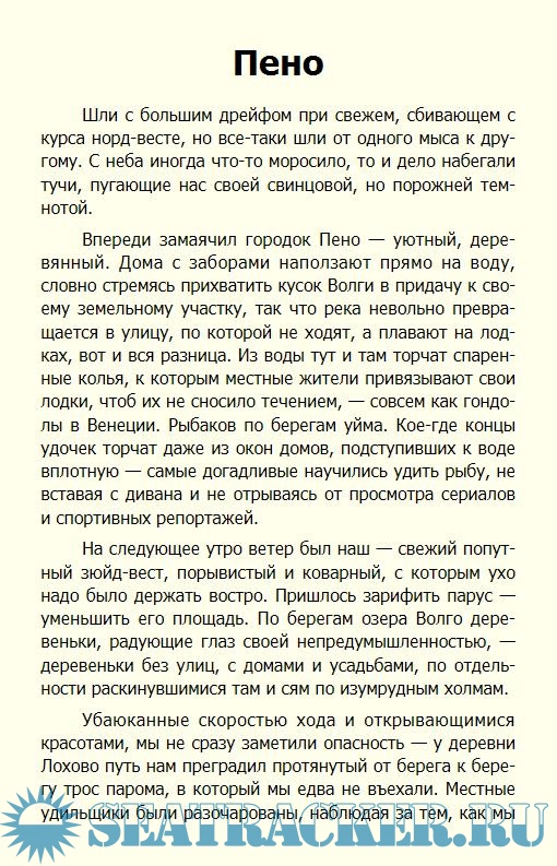 Книга написана в лучших традициях речного травелога, автору удалось соединить художественность и документальность, передать азарт путешественника и рассказать о пространстве, времени, истории великой реки. Мистерия поиска и преодоления, настоящая энциклопедия современной Волги, родившаяся в ходе беспримерного путешествия.