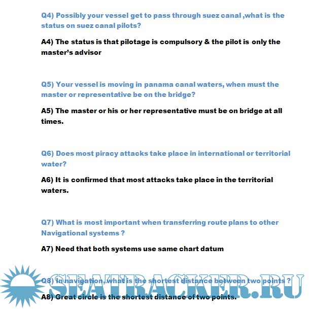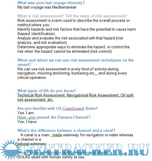 Описание: Список вопросов с ответами, подготовка к собеседованию в крюинговых компаниях для штурманов.