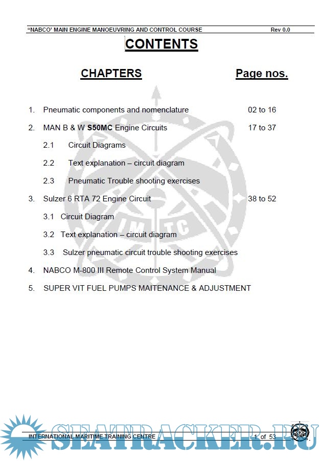 Year: 2xxx Language: english Author: International Maritime Training Centre Genre: Training courses Publisher: International Maritime Training Centre Format: PDF Quality: eBook Pages count: 434 Description: NABCO Main Engine Manoeuvring & Control Course
