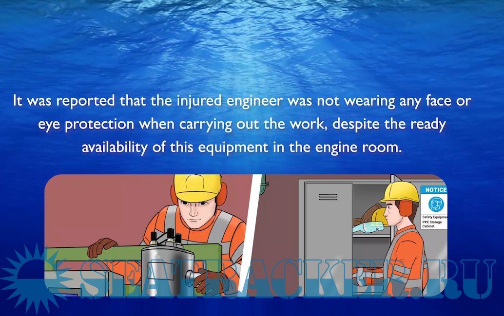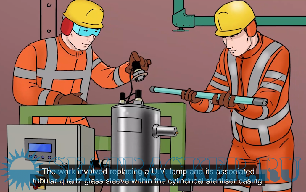 The incident occurred while two of the vessel's engineers were performing maintenance on the U.V. steriliser of the fresh water generator in port.