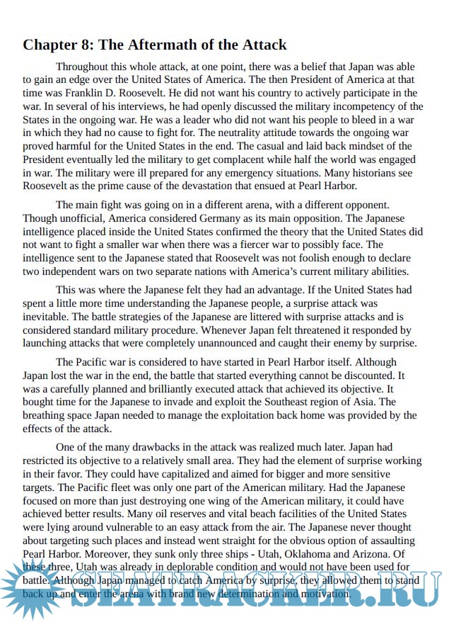 Year: 2015 Language: english Author: Robert Jenkins Format: PDF Quality: eBook Pages count: 56 Description: The bombing of Pearl Harbor, in the worlds of President Roosevelt, is truly a “day that will live on in infamy”. We know that it was the day that Japan decided to attack US soil in an effort to dissuade and cripple the United States so they would let up on sanctions and keep out of the war. We know the stories of the sailors that lived and witness this. We’ve heard their story. But a good reporter knows… there’s always two sides to every story. What provoked the Japanese to bring the fight to us? Why would they attack a nation, which for the purposes of her citizens, never did anything to hurt them? To these purposes we look at the attack from the perspective of the Japanese. We see what they viewed as the American death sentence to their commerce. Read about their tragic decision to hit us and hit us hard and what made them choose that course of action. Learn why this tragedy could have been greater if not for concerns from the higher ups. Pearl Harbor will not be forgotten. Her name lives on in the spirit of the Navy and the memory of the Hawiian people. For the Japanese though, they will also never forget, and maybe always remember their decision.