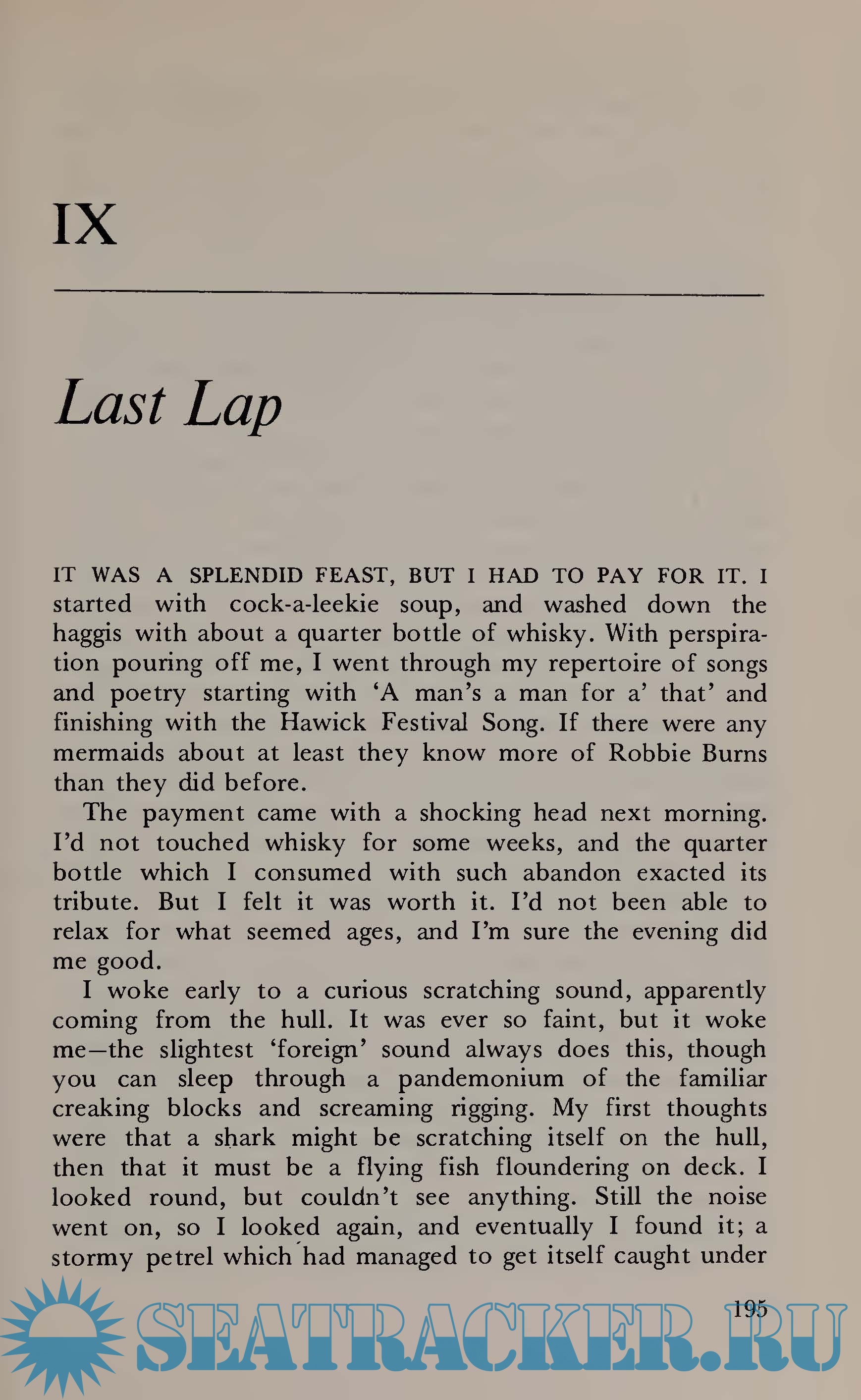 Year: 1971 Language: english Author: Chay Blyth Genre: Textbook Publisher: HODDER AND STOUGHTON Edition: First ISBN: 0 340 14920 5. Format: PDF Quality: Scanned pages Pages count: 260 Description: 'The most astounding passage under sail that has ever been made by one man alone.' The Times Chay Blyth sailed round the world, single- handed against the wind - the longest windward sail in history - in a small boat, 59 feet long, made of British steel. The skills and expertise of a century of shipbuilding were concentrated into British Steel, which in 30,000 miles of almost continuous up-hill sailing, encountered a more severe battering than most other large yachts en¬ counter in ten years. The courage and determination concentrated into lone sailor Chay Blyth makes The Impossible Voyage compulsive reading. There were good days, fine and clear. And days of near-disaster, when he fought the full force of the Westerlies in the Roaring Forties; when his self-steering gear broke beyond repair; his running booms were shattered; and he gashed his forehead deeply when thrown by enormous seas. The worst storm on the voyage, 1,500 miles from Capetown, forced him well off course. 'If ever I have nightmare Additional info: A MAN OF IRON Born in Hawick, Scotland, Chay Blyth joined the Parachute Regiment at 18. A sergeant at 21, he served in a number of overseas postings, including Aden during the troubles, and was seconded as an instructor to the Eskdale Outward Bound School. In 1966 he rowed the Atlantic with Captain John Ridgway in 92 days, and for his part in this exploit was awarded the British Empire Medal. He left the Army in 1967 and in 1968 sailed non-stop, single- handed to South Africa in the Sunday Times Golden Globe Trophy Race around the world, but had to give up. His wife Maureen, who comes from Wallsend-on- Tyne, accompanied him on the voyage back to England. They have one daughter, Samantha. A BOAT OF STEEL British Steel is 59 feet long overall, has a beam of 12 feet 10 inches, a draught of 8 feet, and displaces some 1 7 tons fully loaded for the voyage. The hull is constructed of steel plate to Lloyd's grade 'A' specification and all the steel was specially treated before and after construction. Five tons of lead ballast was installed in the deep 'fin' keel to give stability and counter the pressure of a working sail area of nearly 1,500 square feet - a tremendous area to be handled by a lone sailor. Jacket