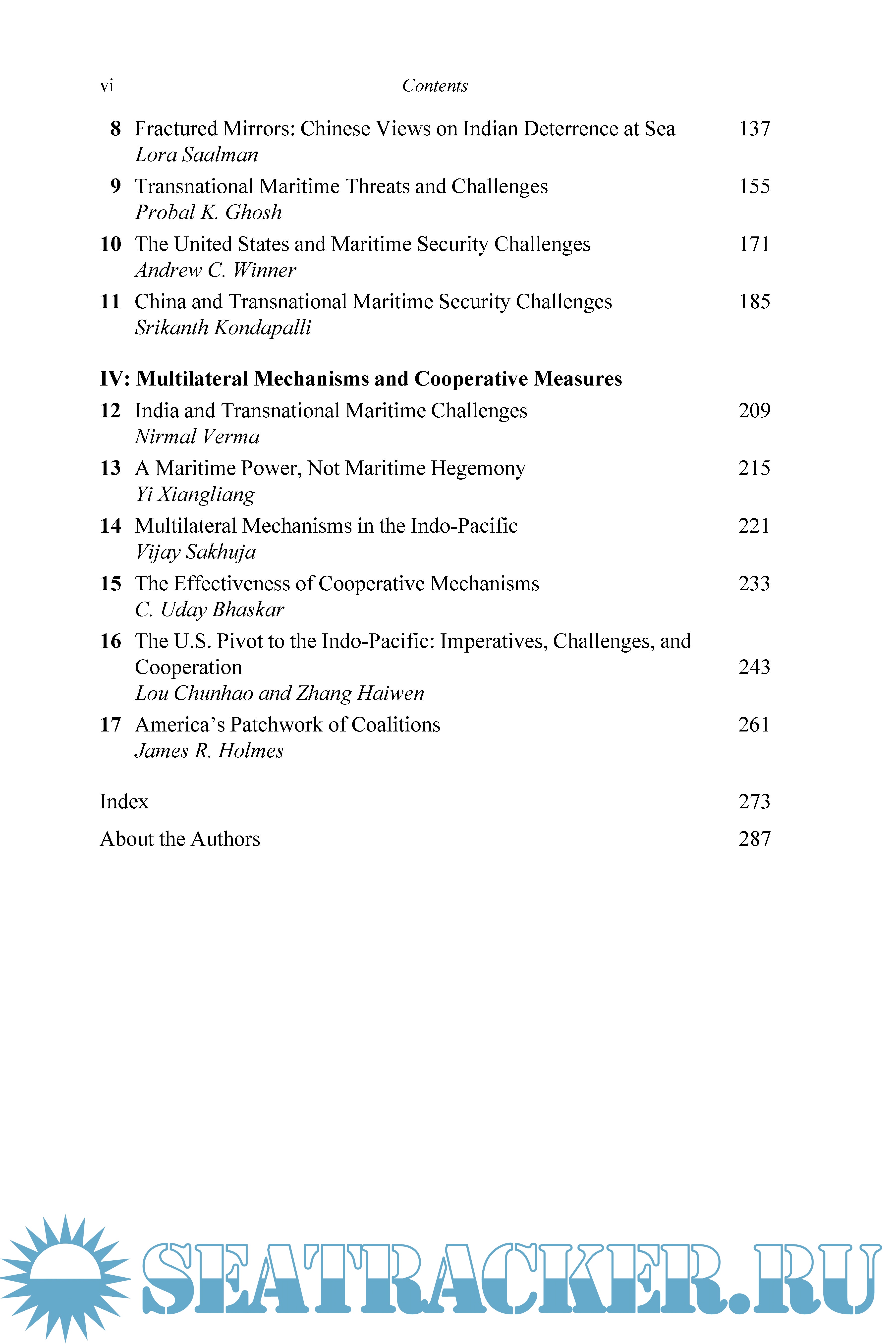 Year: 2014 Language: english Author: Mohan Malik and Others Genre: Technical book Publisher: Rowman & Littlefield Edition: 1st ISBN: 9781442235328 Format: PDF Quality: eBook Pages count: 310 Description: This volume offers an invaluable set of chapters that update and inform us the challenges facing the Indo-Pacific regions and the potential for co-operation by a group of eminent scholars and practitioners. It adds substantially to our understanding of the larger regional and global implications of the emerging power dynamics in the region. -- T.V. Paul, James McGill Professor of International Relations, McGill University, Canada. Maritime Security in the Indo-Pacific is without doubt an excellent collection of diverse perspectives which deserves attention from the academic and policymaking communities. Moreover, the rich array of information and sources contained within this volume will allow those interested to research more deeply into the heart of this increasingly crucial subject matter. The chapters, written by a cross-section of practitioners, diplomats, policymakers, and scholars from the three major powers discussed (United States, China, India) explain the opportunities and risks in the Indo-Pacific region and identify specific naval measures needed to enhance maritime security in the region.
