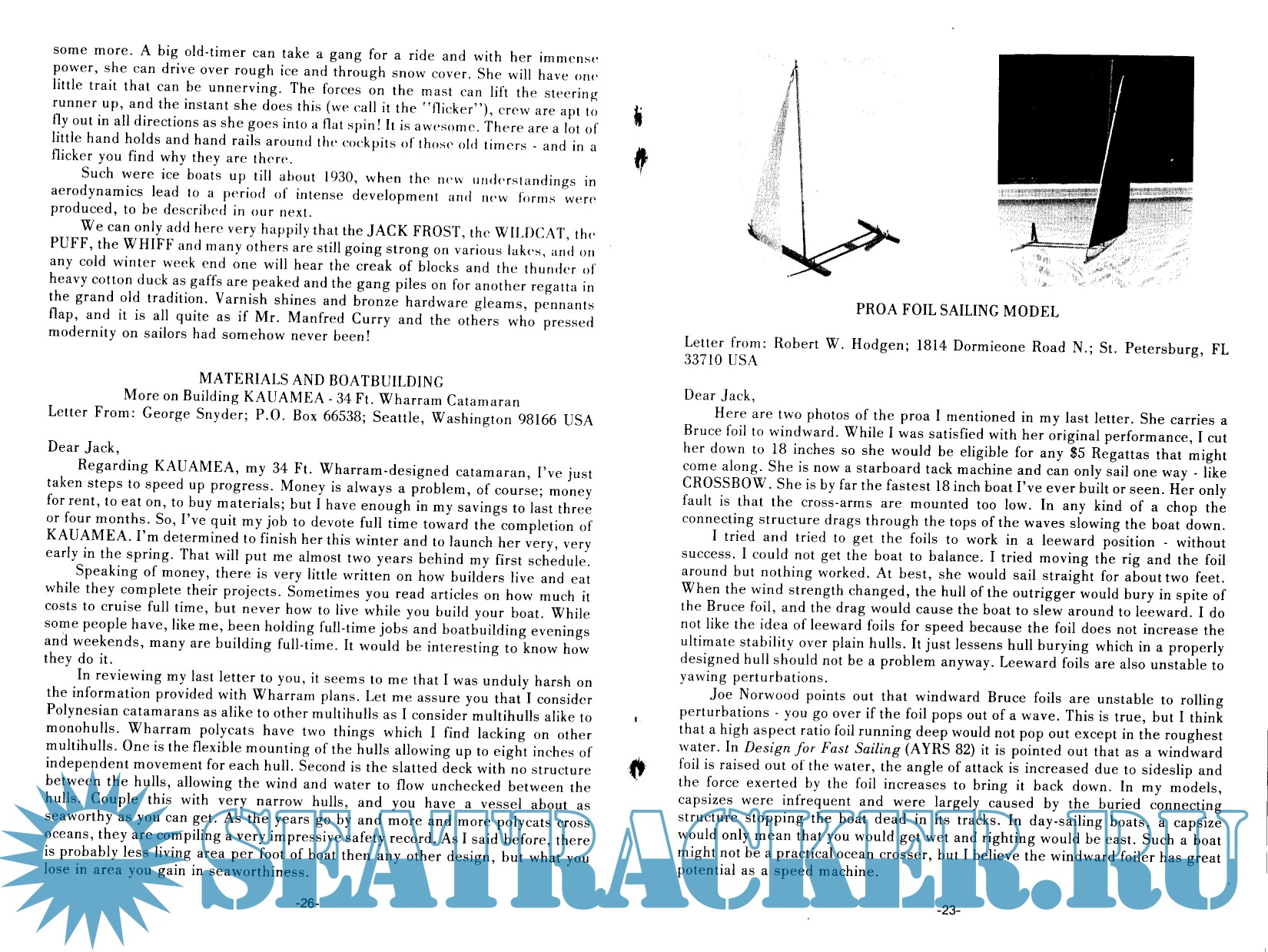 Year: 1976 Language: english Author: A.Y.R.S. Genre: Collection of books Publisher: A.Y.R.S. Format: PDF Quality: Scanned pages Pages count: 47 Description: The AYRS is a UK registered Educational Charity (No 234081) dedicated to finding out how to make yachting better (faster, more fun, whatever you want it to be). Our members run from sober sided professional yacht designers and builders to bearded eccentrics full of ideas that they cannot make work.From our members have come the modern sailing multihulls, self-steering gear, sailboards, a flock of successful sailing hydrofoils, the World Speed Sailing Record system, etc. Now people are taking off with kiteboats and autogyro-sails, and the first amphibious bicycle.